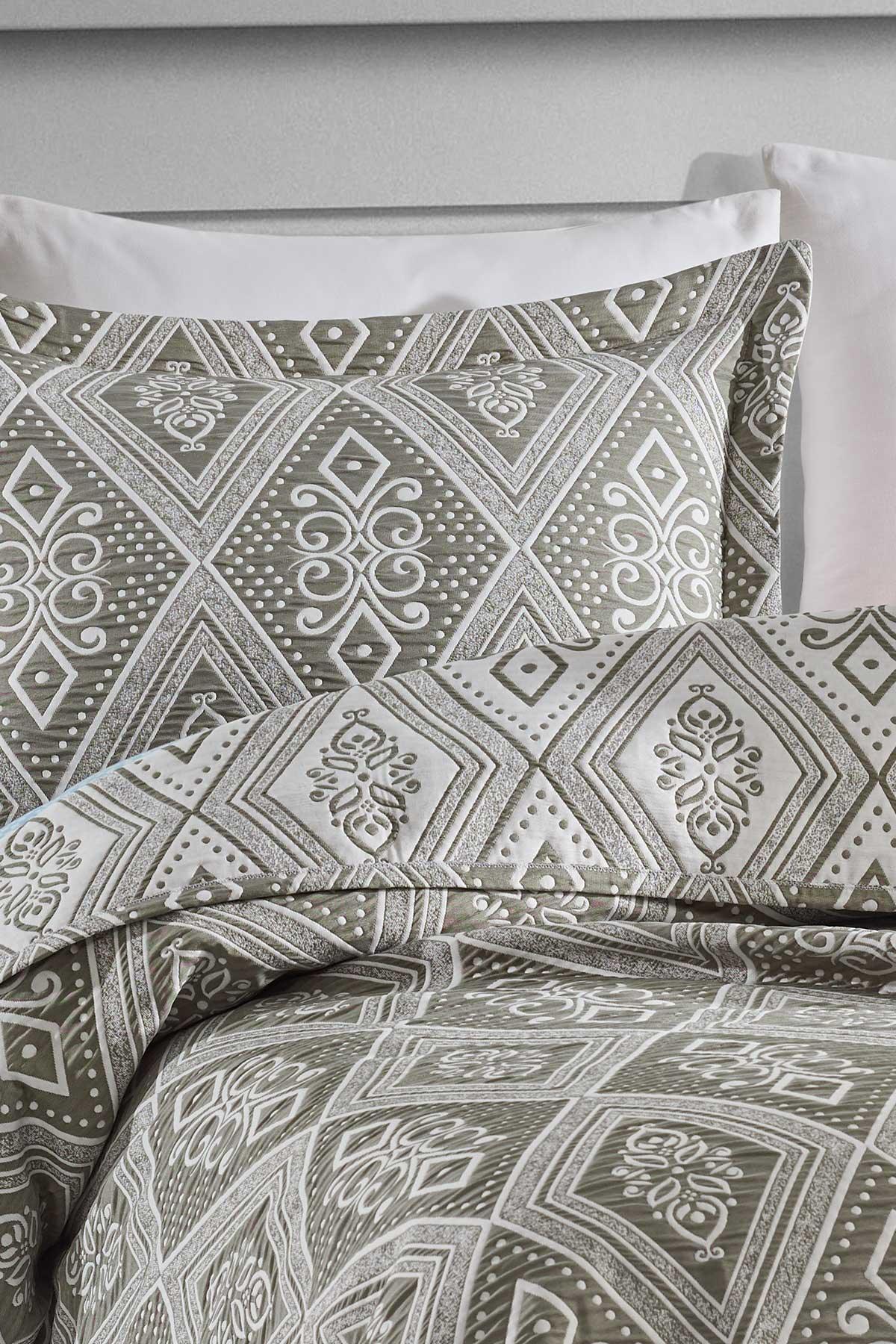 Yatak Örtüsü 250X240 cm+50*70 cm (2 Yastık) 3 parçadan oluşmaktadır. Kullanışlı ve hafif yapısı ile günlük kullanım için idealdir. Yumuşak yapısı, modern deseni ile ister yatak örtüsü isterseniz pike olarak her mevsim kullanabilirsiniz. Ürün çift taraflı şekilde kullanıma uygundur. Kumaş yapısı sayesinde yıkandıkça yumuşaklık özelliğini kaybetmez, kırışmaz ve ütüleme gerektirmez. Elyafsız özelliği ile makinede 30 derecede yıkanarak pratik ve hızlı bir kullanım sağlar.