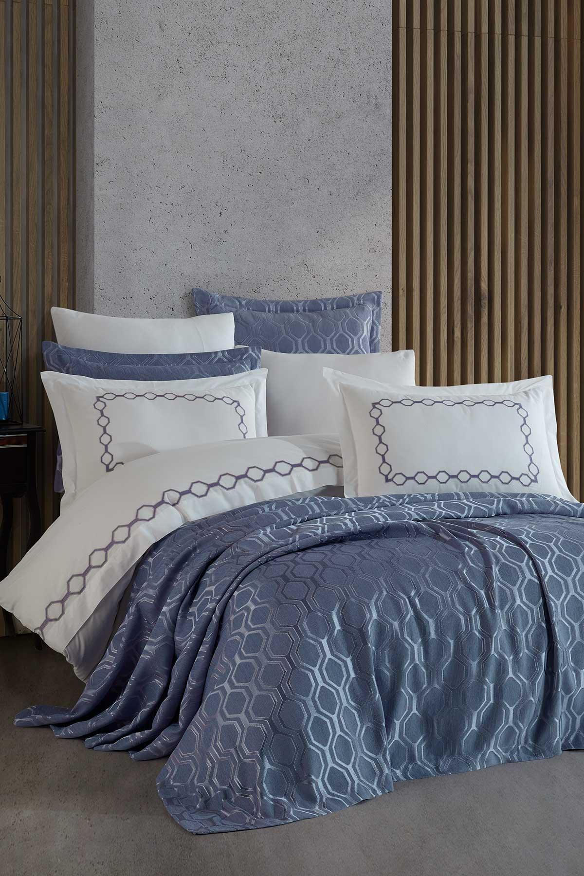 Pamuk Nevresimli Şönil Yatak Örtüsü Seti 9 Parça Andrea Mavi - Elart Home