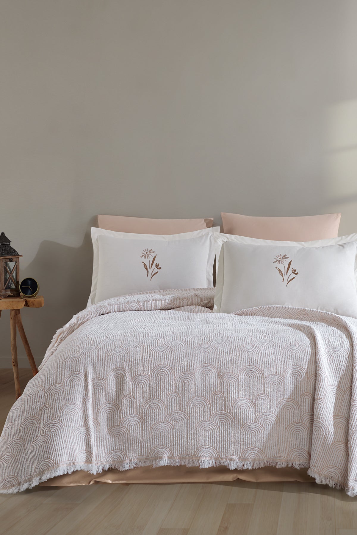 2 parça yastık kılıfından oluşmaktadır. %100 pamuk kumaş doğal hava geçirgen yapısı ve yüksek nem emici özelliği sayesinde terletmez. Rahat ve konforlu bir uyku deneyimi sunar. Cildi tahriş etmez ve insan sağlığına zarar vermez. Nakışın zarif görünümü ve renk tonlarıyla yatağınızın diğer parçalarıyla uyum sağlayacaktır. 54 tel dokuma sıklığı ile bu takım uzun ömürlü ve dayanıklıdır. Ürünümüzü 30 derecede makinede yıkayarak günlük kullanımınızda konforu ve rahatlığı bulacaksınız. Kurutma makinesi ve kuru temizleme önerilmez.