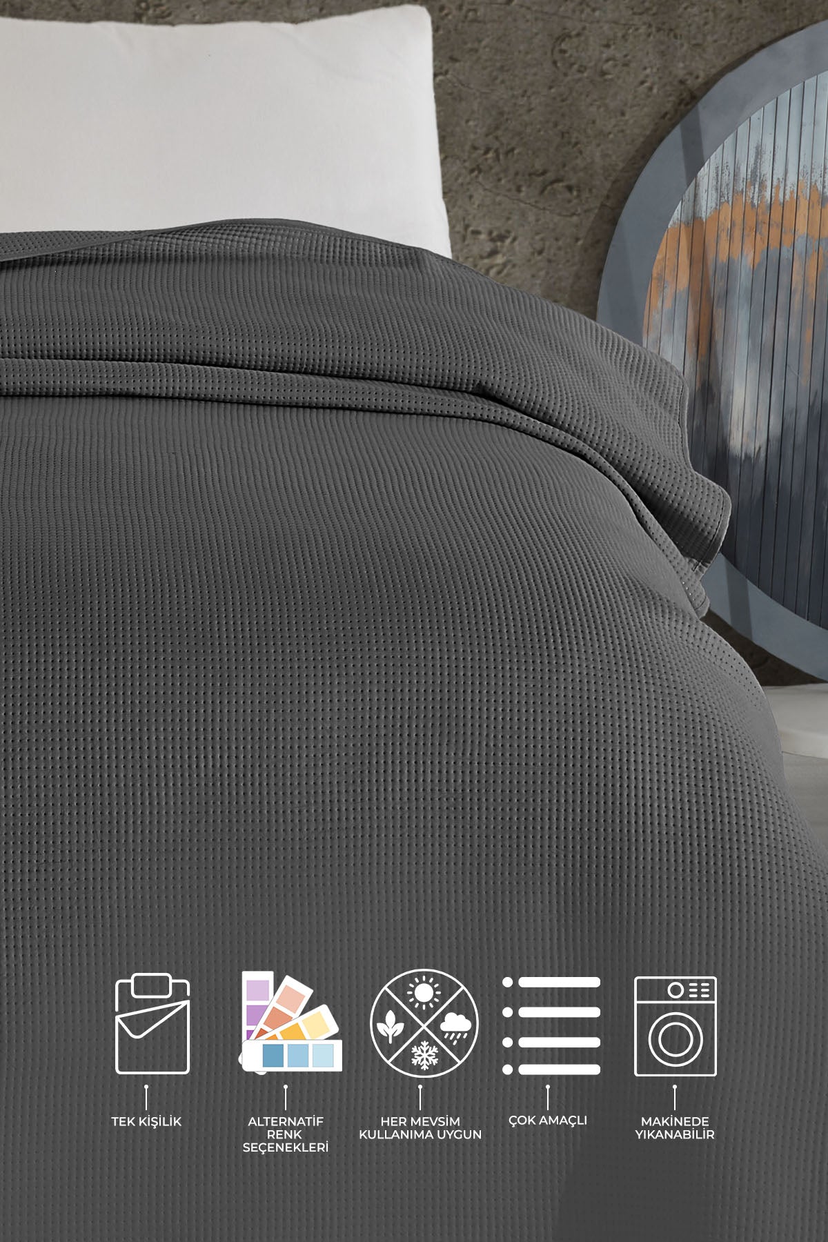 ELART Pandora Çok Amaçlı Yatak Örtüsü Tek Kişilik (160x220 cm) Antrasit
