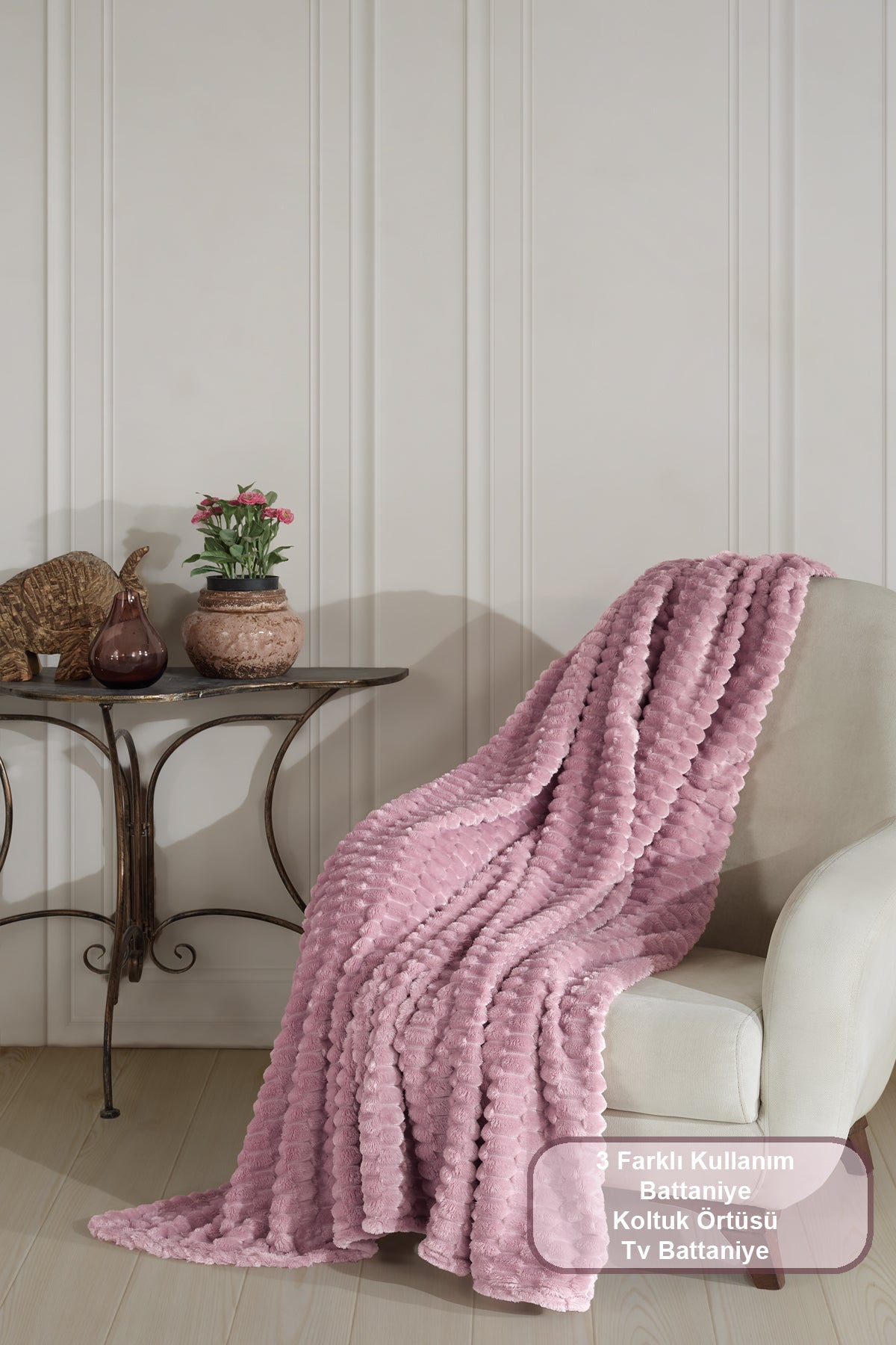 Yumuşak yapısı cildinizi nazikçe sararak ipeksi bir dokunuş sunar. Dolgun ve yüksek gramajlı yüzey ısıyı korur, rahatlamayı artırır. Soğuk havalarda hem sıcacık hem de yumuşacık yapısı ile vazgeçilmeziniz olacak. İster battaniye olarak, isterseniz koltuk örtüsü olarak kullanabilirsiniz. Dayanıklı ve kolay temizlenen yapısıyla ürünümüzü 30 derecede makinede yıkayarak günlük kullanımınızda konforu ve rahatlığı bulacaksınız. Kuru temizlemeye uygundur.