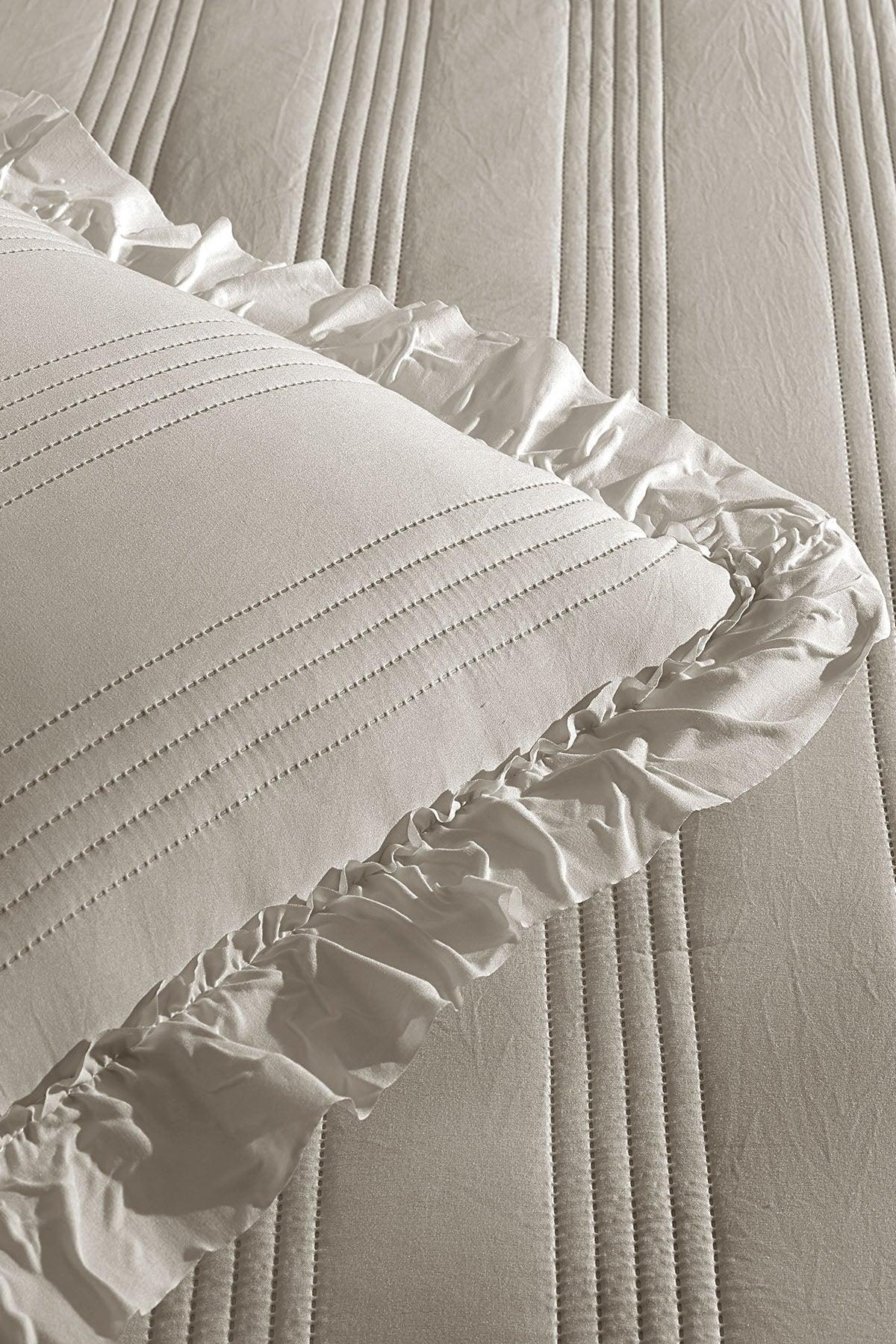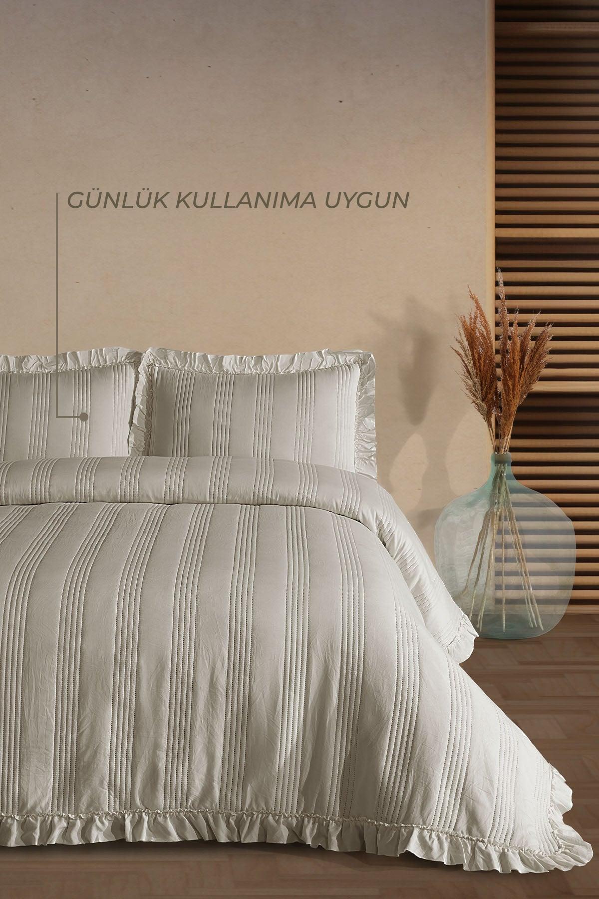 Fiorella Yatak Örtüsü, zarif fırfırlı detaylarıyla yatak odanıza estetik ve romantik bir dokunuş katar ;