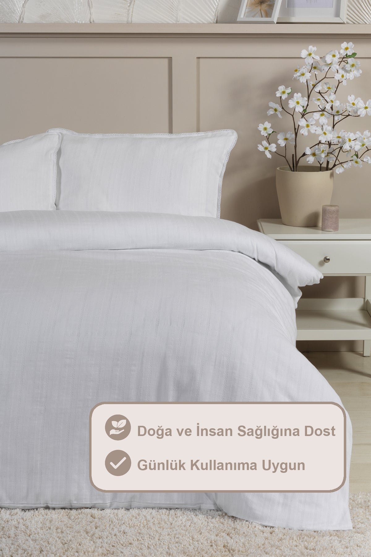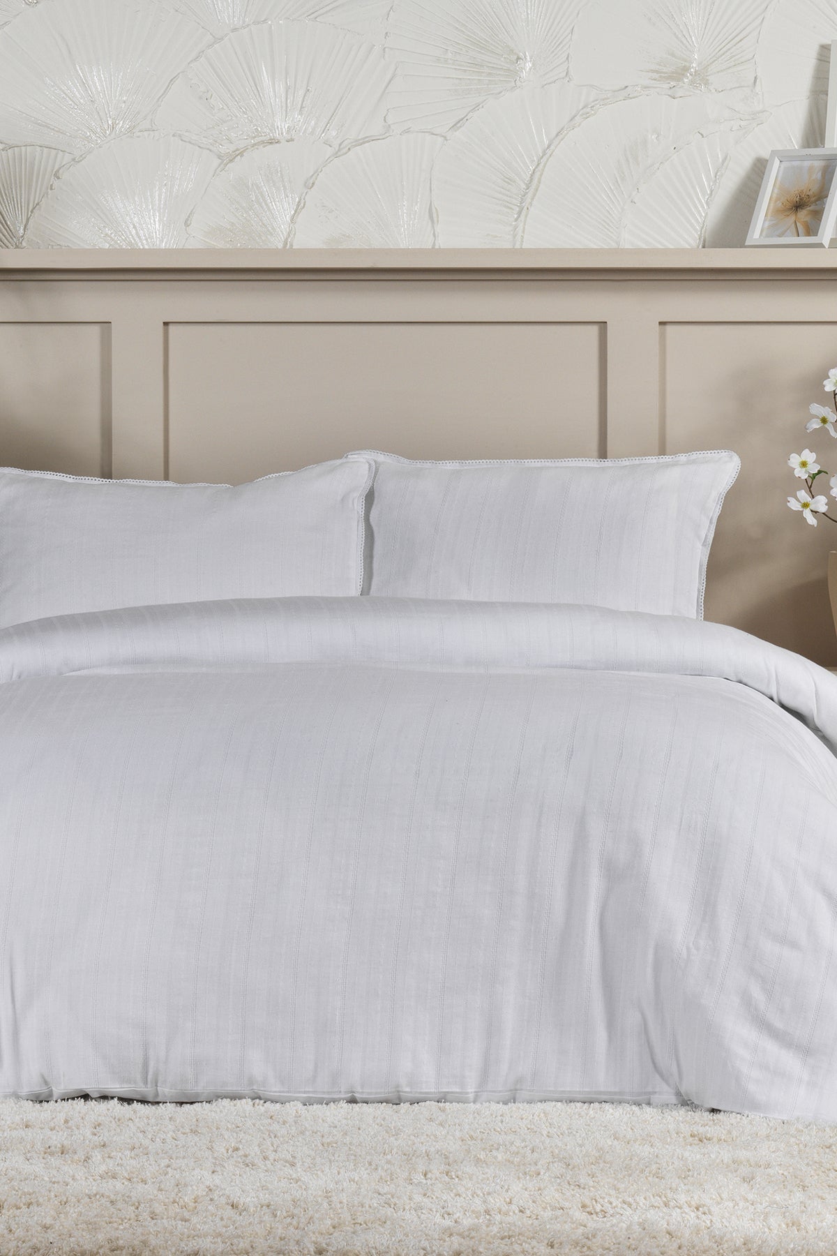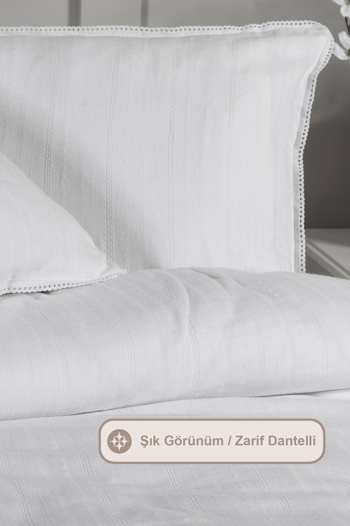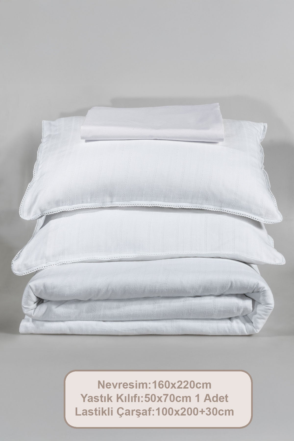 ELART Diana Nevresim Takımı Tek Kişilik Ranforce Lastikli Çarşaf 3 Parça (160x220 cm) Beyaz
