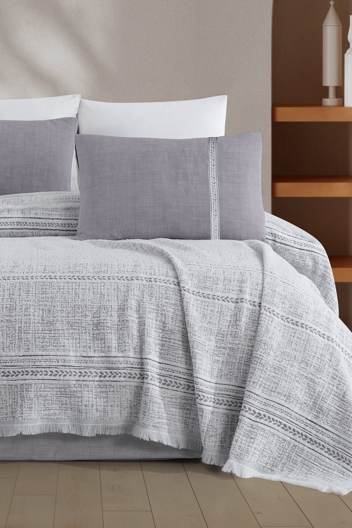 ELART Nish Yastık Kılıfı Brodeli 2 Adet (50x70 cm) Gri