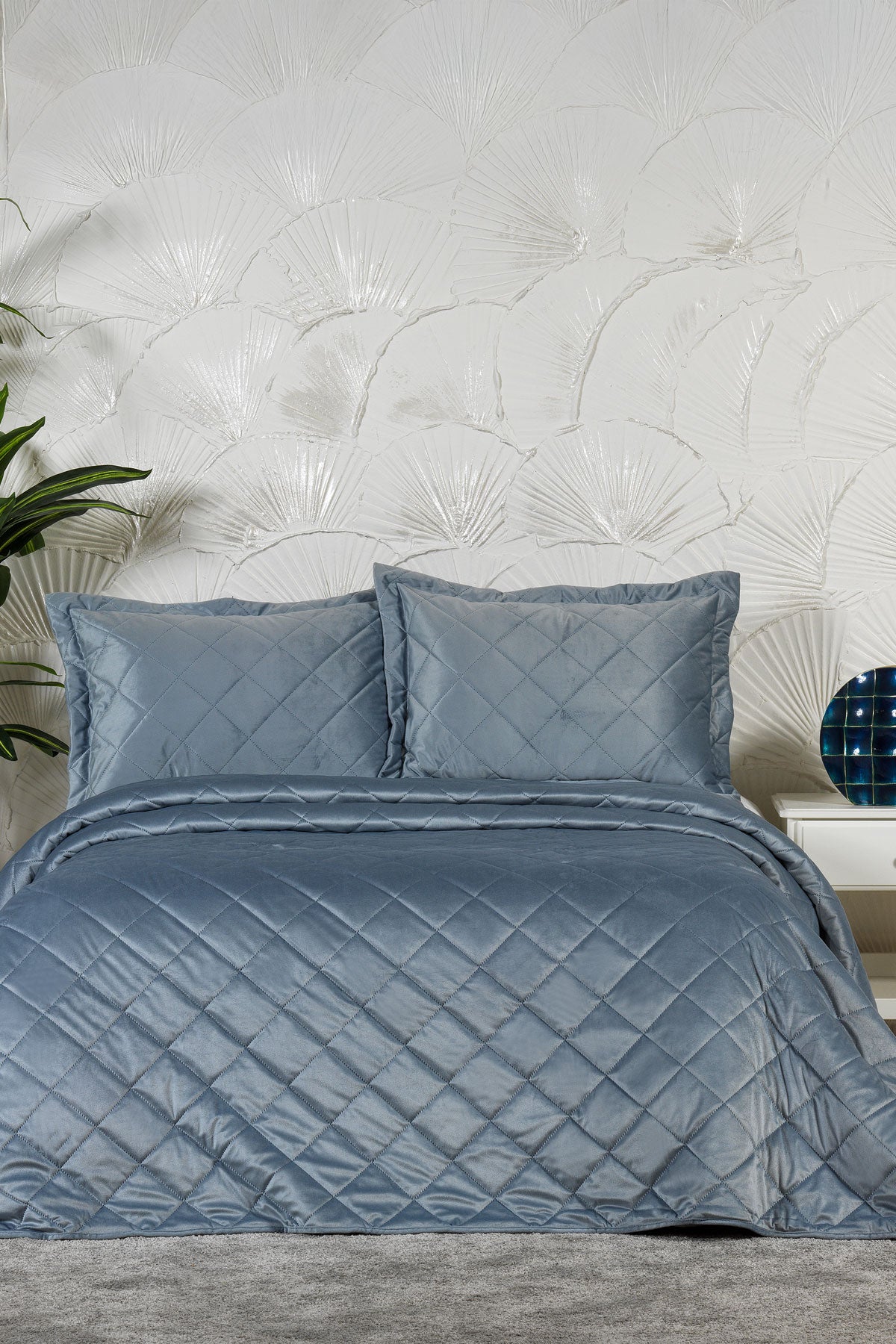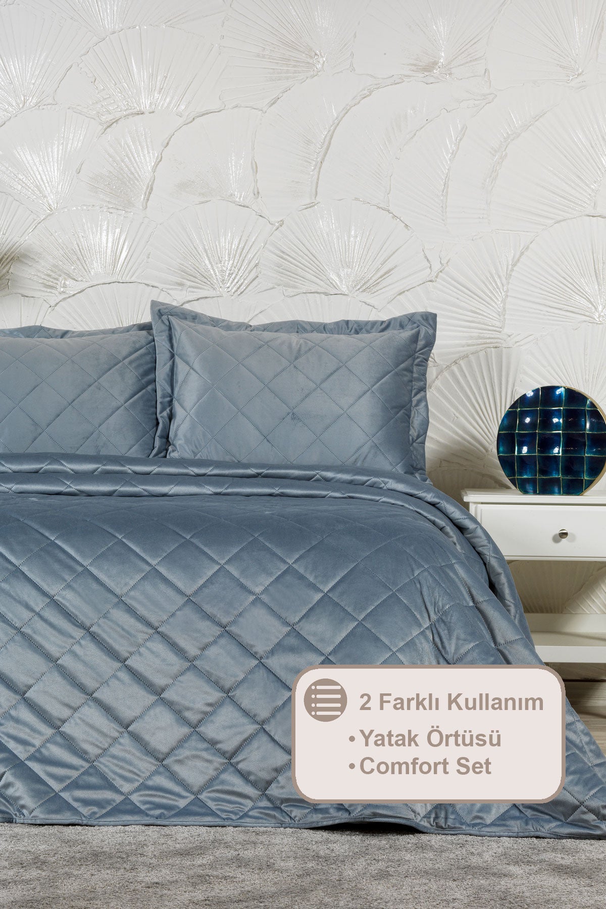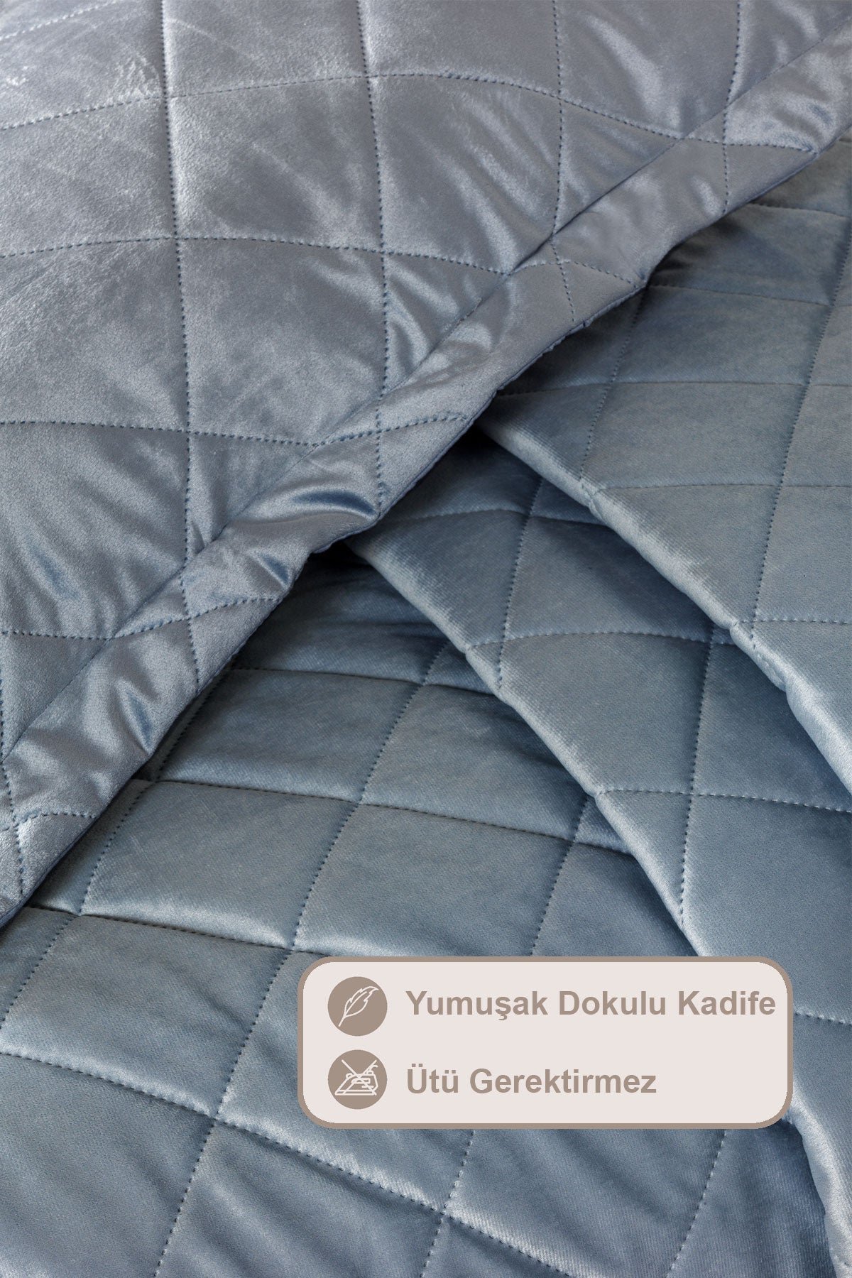 ELART Alice Yatak Örtüsü Çift Kişilik Kadife (240x260 cm) Gri