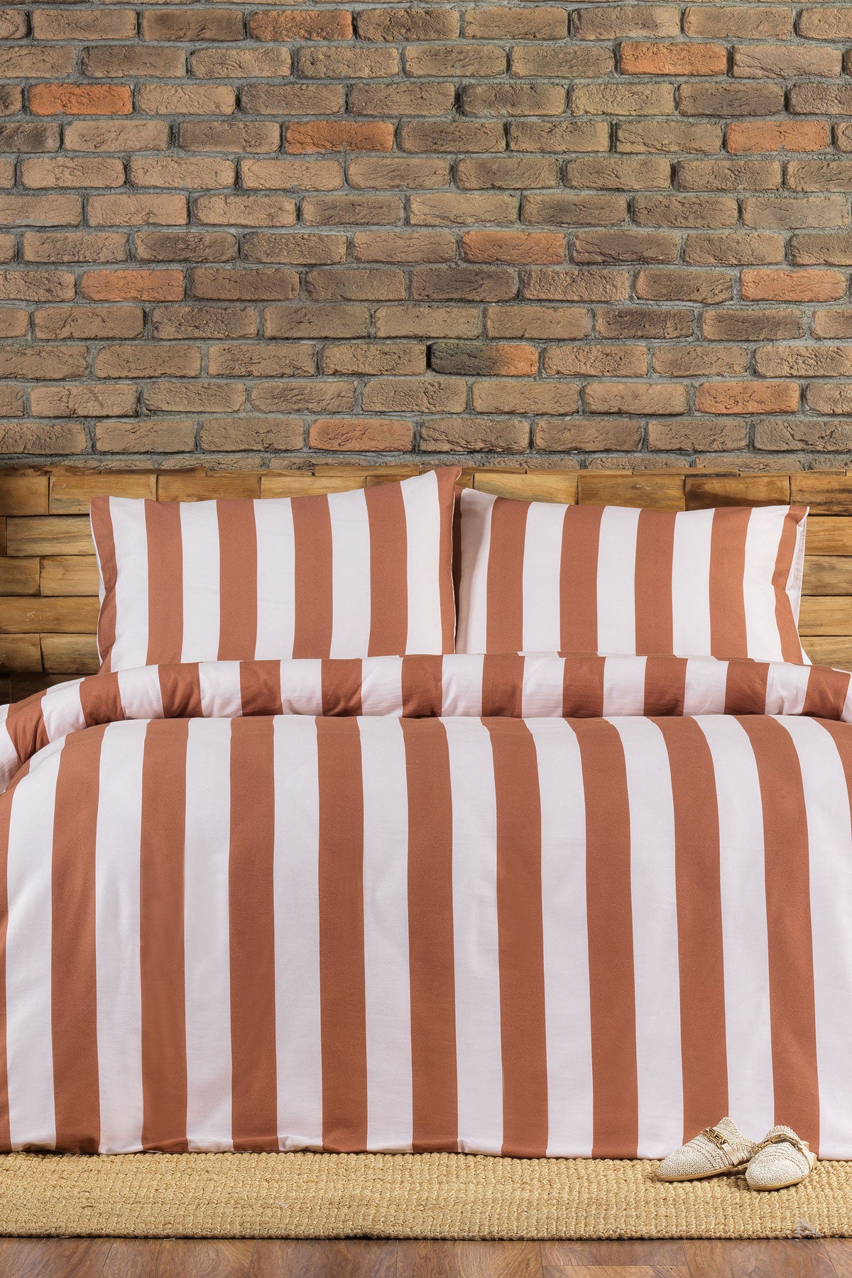 ELART Brad Nevresim Seti Çift Kişilik Digital Baskılı %100 Pamuk Saten 3 Parça (200x220 cm) Kahve