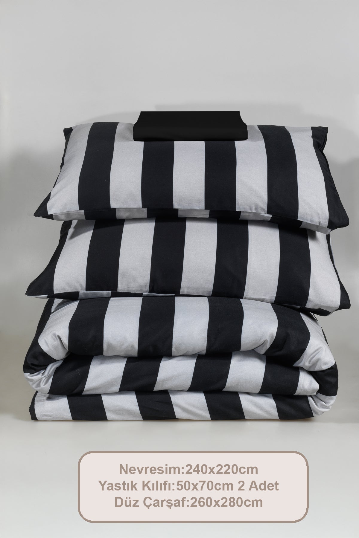 4 parçadan oluşmaktadır. Parlak satenin zarif dokusu, dijital baskının canlı ve net renkleriyle buluşuyor. Modern teknolojiyle üretilen özel baskılar, her detayda renklerin ışıltısını korurken, %100 pamuk saten dokusu cildinize yumuşak bir temas sunar. Doğal hava geçirgen yapısı ve yüksek nem emici özelliği sayesinde terletmez. Rahat ve konforlu bir uyku deneyimi sunar. Cildi tahriş etmez ve insan sağlığına zarar vermez. Modern çizgisel tasarımı ile yatak odanıza estetik bir hava katarak konforlu uykunun keyfini yaşatır. 82 tel dokuma sıklığı ile bu takım uzun ömürlü ve dayanıklıdır. Ürünümüzü 30 derecede makinede yıkayarak günlük kullanımınızda konforu ve rahatlığı bulacaksınız. Kurutma makinesi ve kuru temizleme önerilmez.