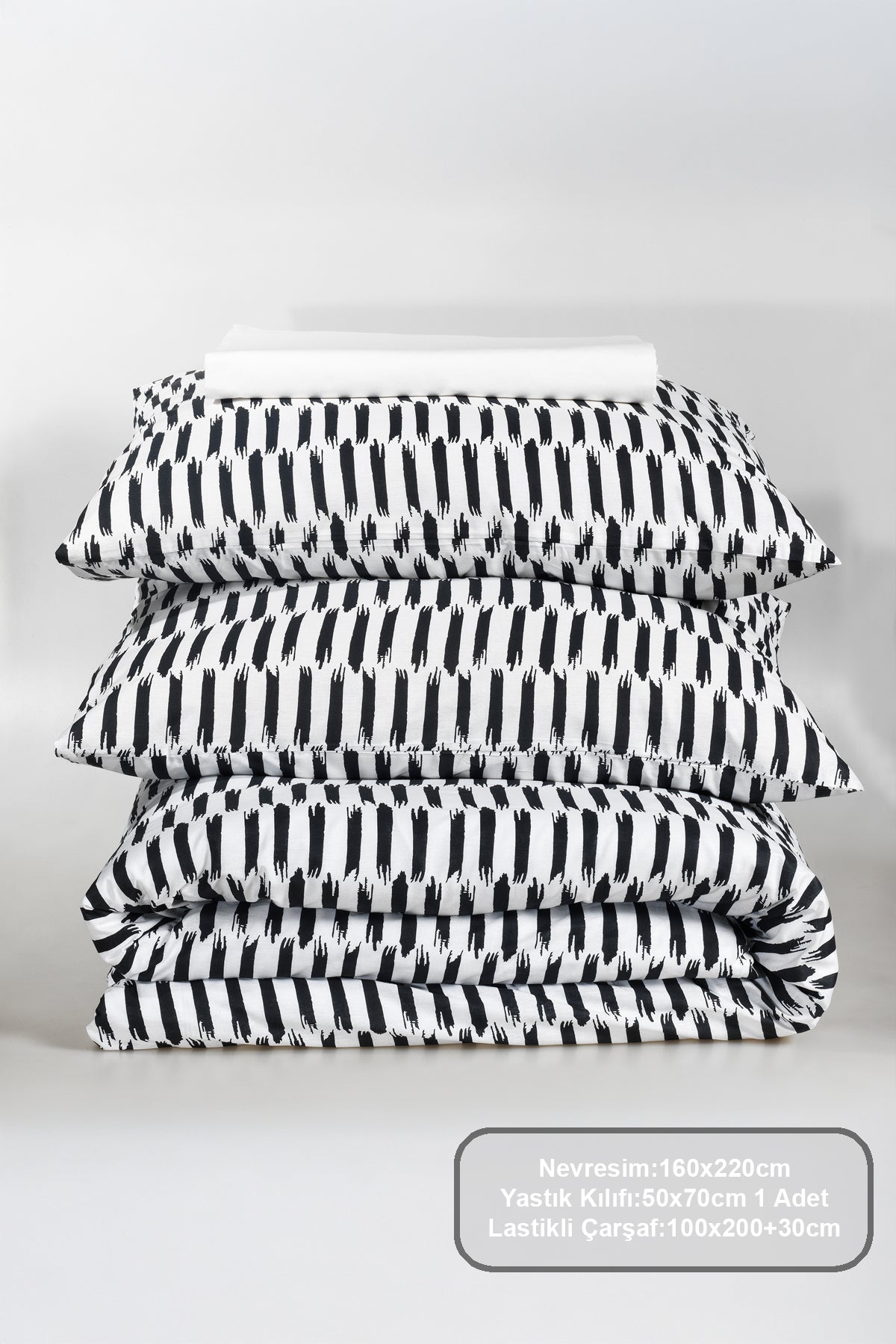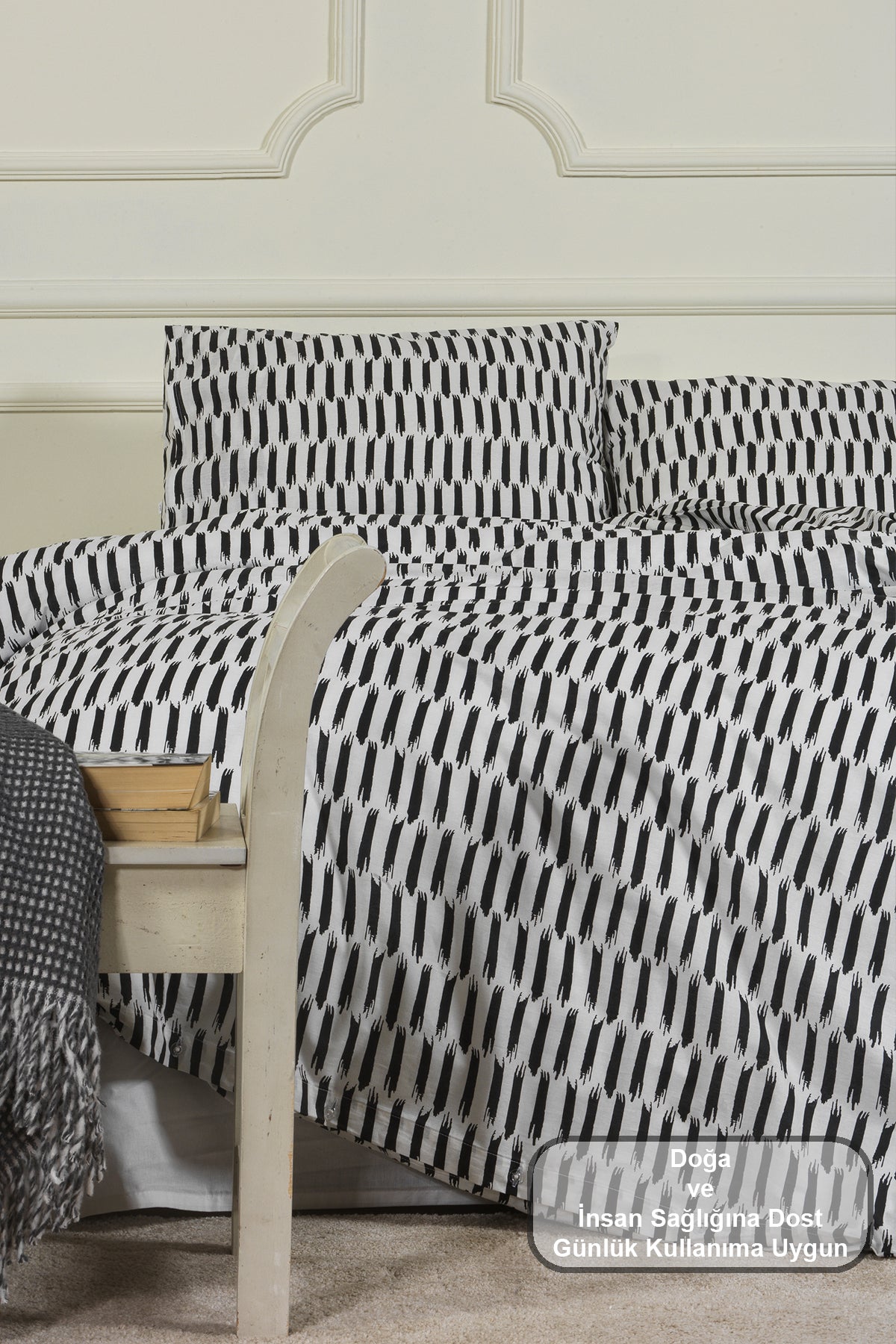 ELART Carlos Nevresim Takımı Tek Kişilik %100 Pamuk Ranforce Lastikli Çarşaf (160x220 cm) Siyah