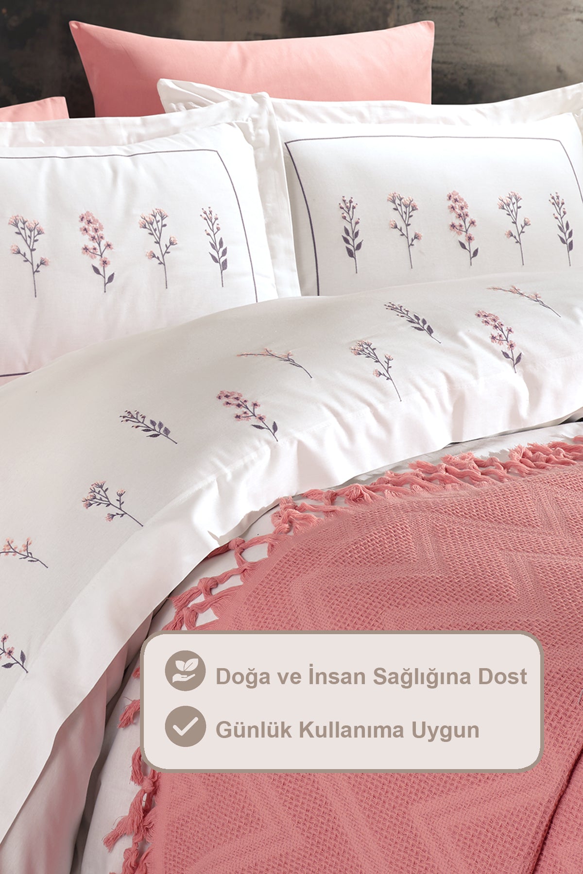 1 parçadan oluşmaktadır. Doğal pamuk kumaşın sağlıklı yapısı, canlı renkler ve modern desenle buluştu. Her mevsimde şık bir yatak örtüsü olarak kullanmanızın yanında yaz aylarında pamuğun hava geçirgen yapısı sayesinde pike olarak da kullanabilirsiniz. Çift taraflı kullanım özelliği ile farklı tarzlarda kullanım sağlar. Ütü gerektirmeyen kumaşı ile zahmetsiz bakım kolaylığı sağlar. Dayanıklı ve makinede 30 derecede yıkanabilir yapısıyla uzun yıllar keyifle kullanacaksınız. Kurutma makinesi ve kuru temizleme önerilmez.