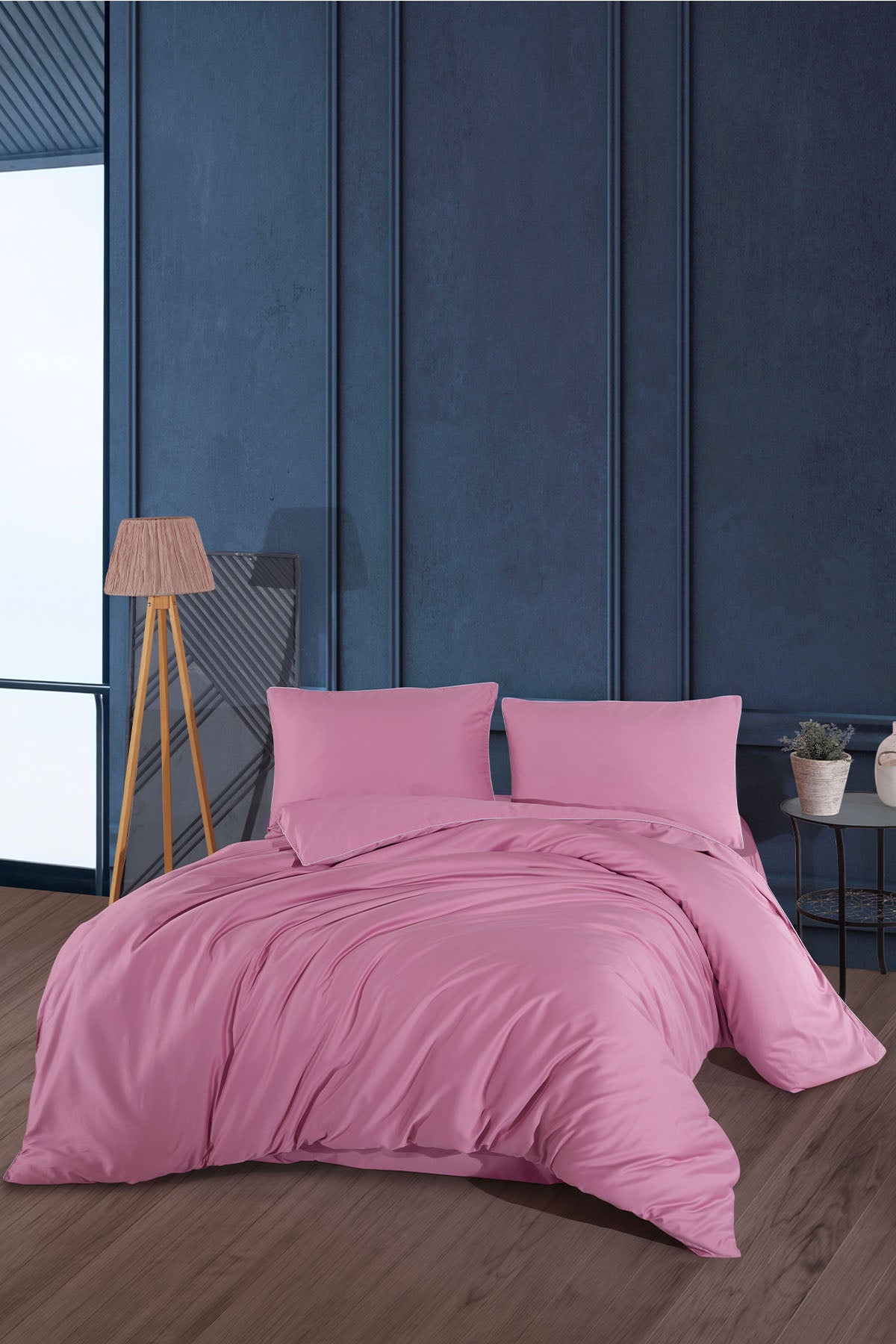 Sade ve asil tasarımı, pamuk satenin yumuşaklığıyla bir arada.