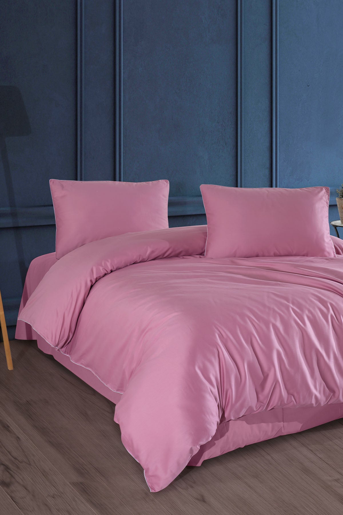 Desmond Saten Nevresim Takımı, yatak odasında modern sadeliği ve satenin doğal ışıltısını tercih edenler için özel olarak üretildi. Gri tonunun sofistike şıklığı, nevresim ve yastıklarda yer alan biyeli detaylarla bütünleşerek güçlü bir stil oluşturur.