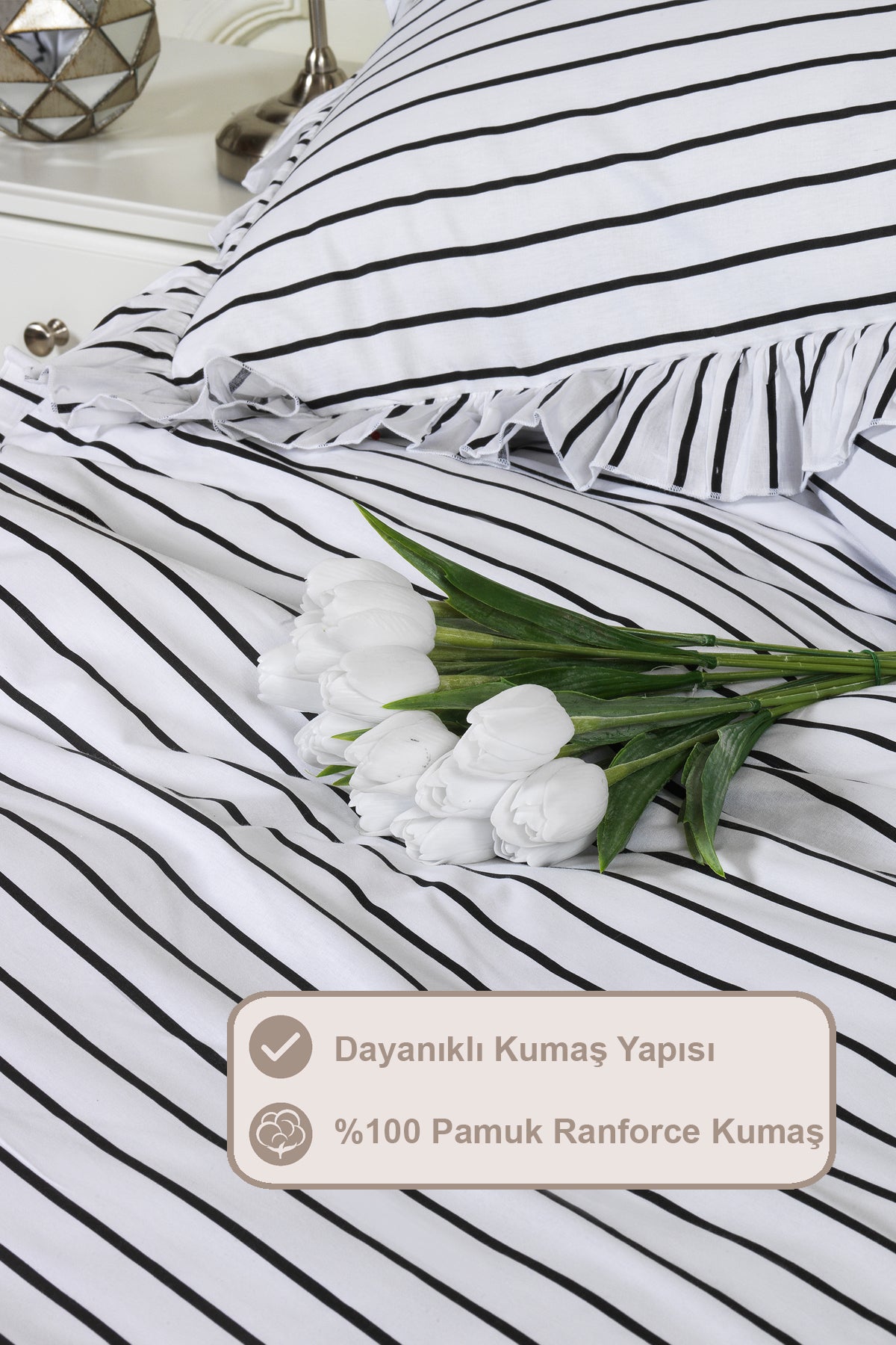 ELART Lara Nevresim Takımı Tek Kişilik Lastikli Çarşaf %100 Pamuk Ranforce Fırfırlı (160x220 cm) Siyah