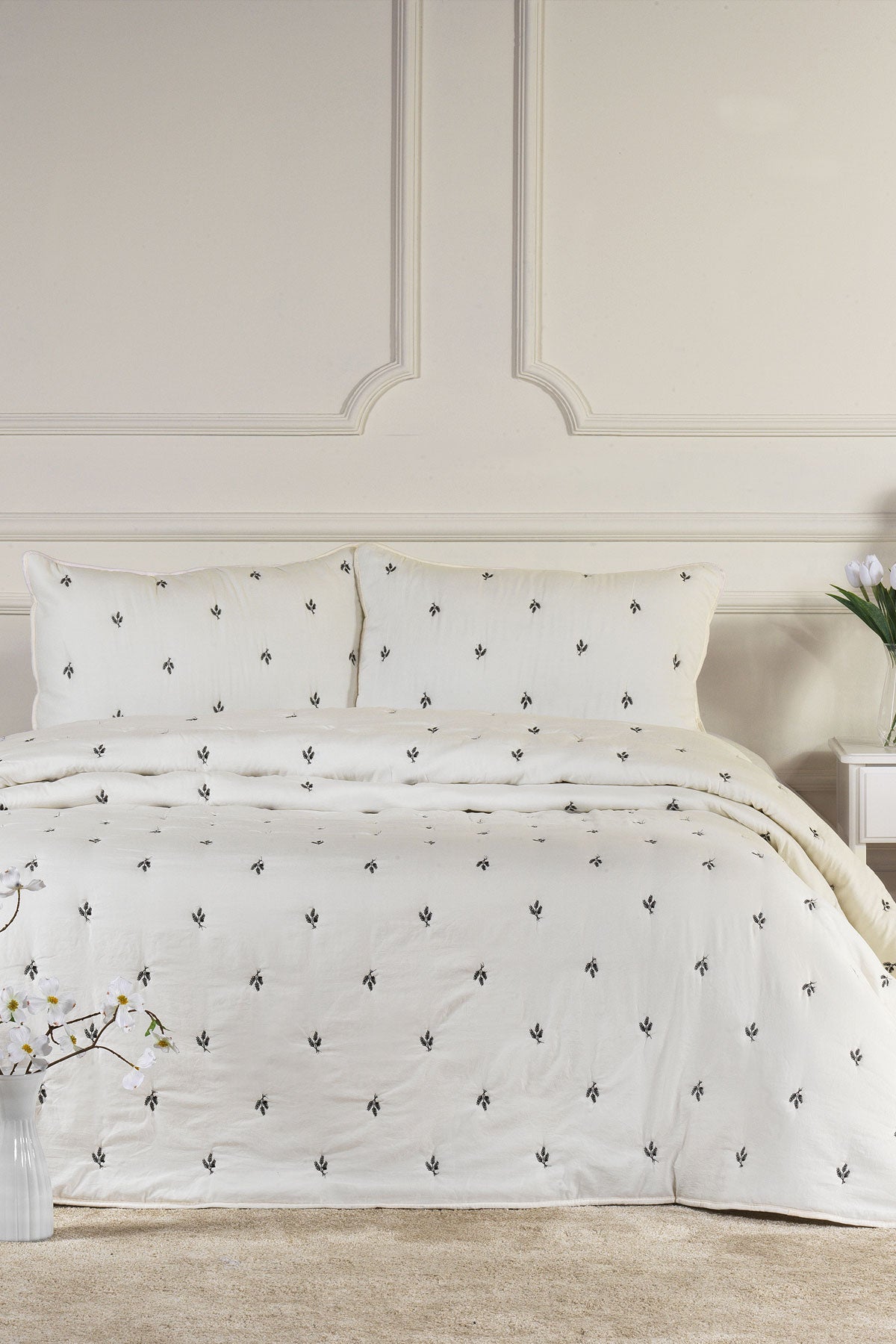 ELART Larissa Yatak Örtüsü Seti Çift Kişilik Nakışlı (220x240 cm) Siyah