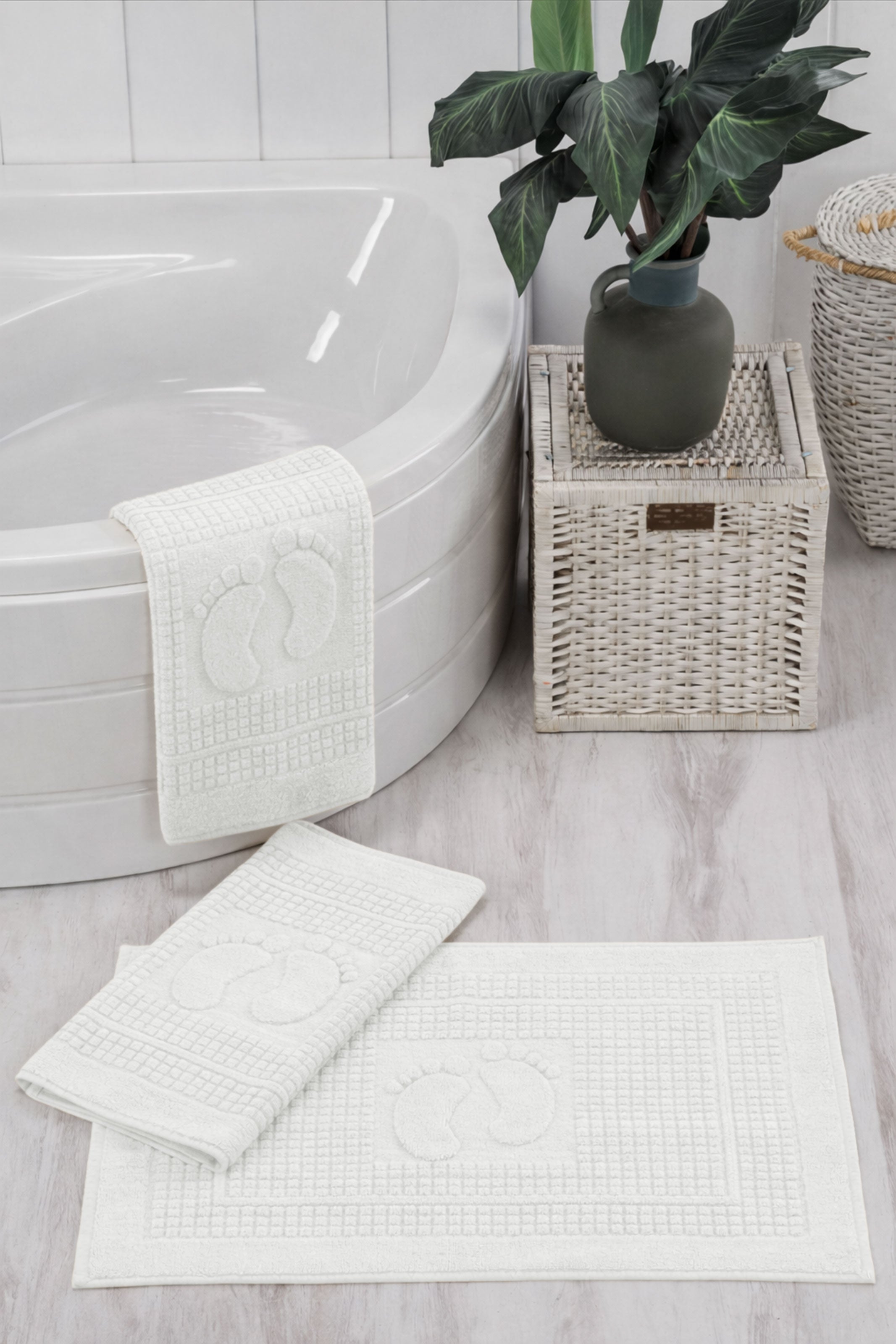 50x70 cm ölçüsüyle geniş yüzey kaplar, %100 pamuk dokusu sayesinde suyu hızla emer ve ayaklarınızda konfor hissi bırakır. Şık dokusu ve pratik kullanımıyla banyonuza hem fonksiyon hem de estetik katar.