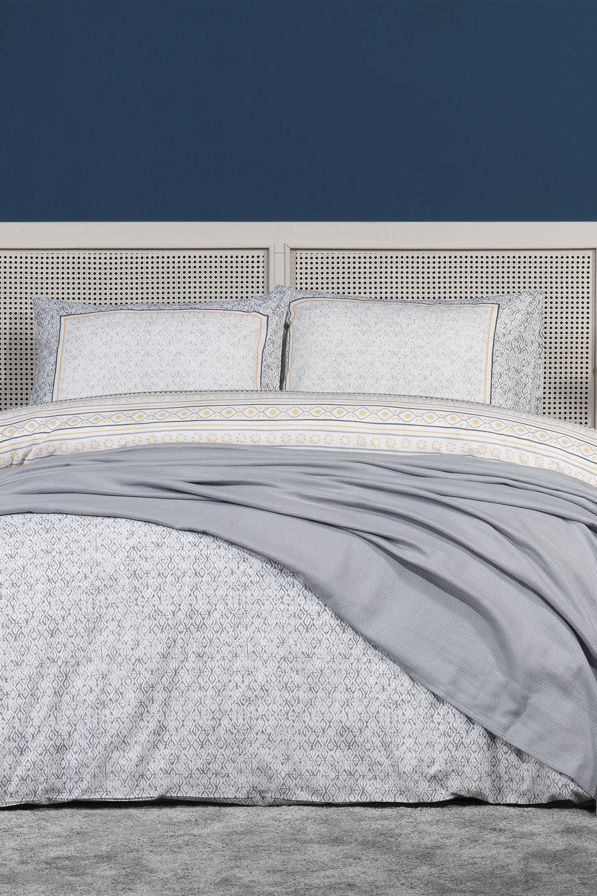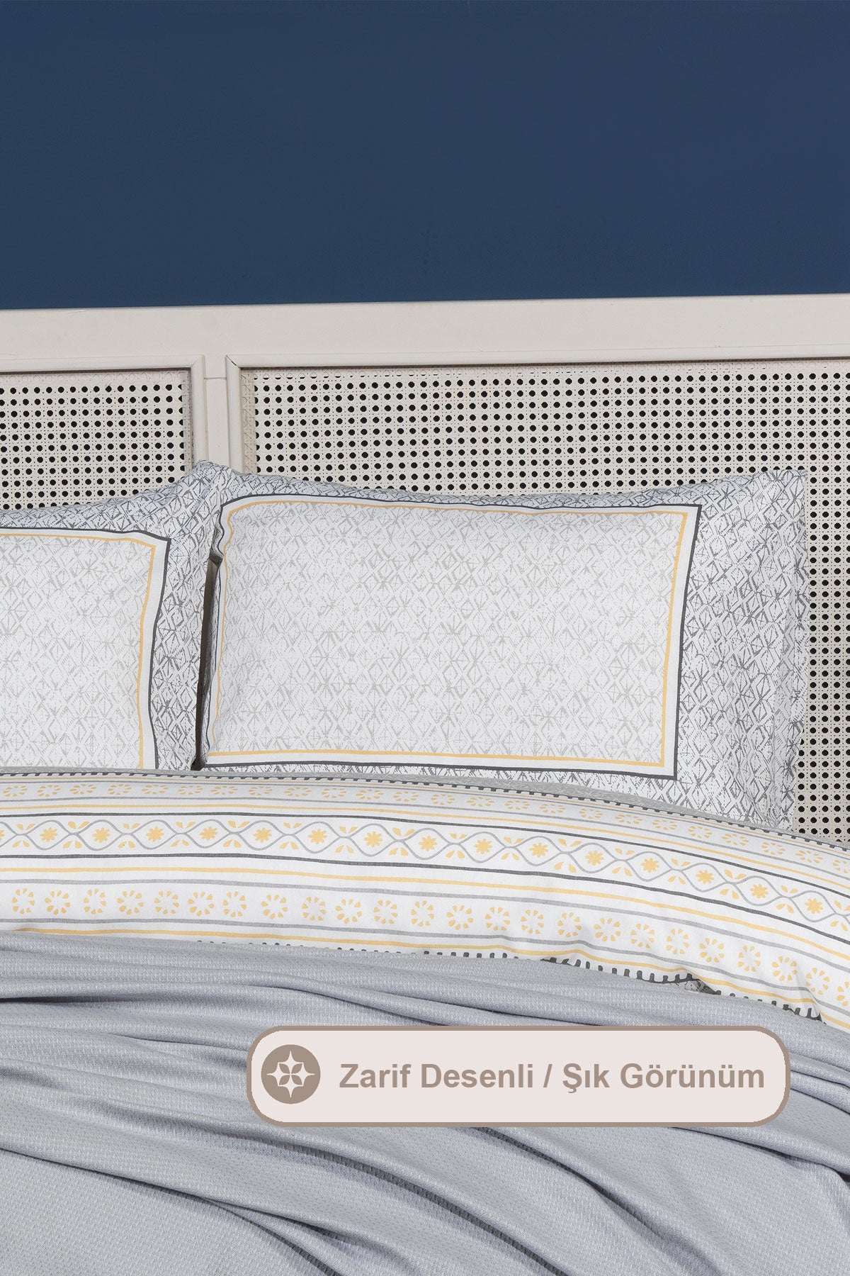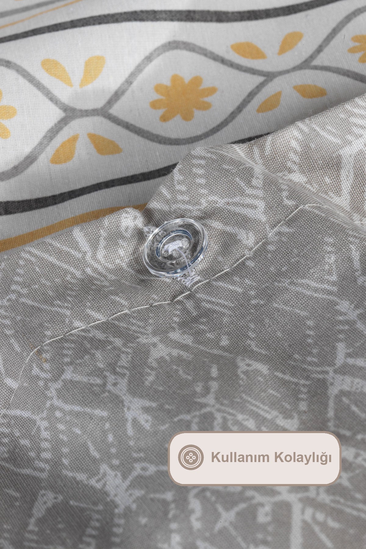 5 parçadan oluşmaktadır. Kış mevsiminde pamuklu nevresimi yorgan geçirerek kullanırken, yaz mevsiminde ise %100 pamuk pikesini kullanabilirsiniz. Pamuklu kumaş; doğal hava geçirgen yapısıyla rahat ve konforlu bir uyku deneyimi sunar. Canlı renkleri ve modern deseni ile yatak odalarınıza ferah ve şık bir görünüm sağlar. Kolay ütülenebilir yapısıyla kullanım kolaylığı sağlar. Ürünümüzü 30 derecede makinede yıkayarak ilk günkü parlaklığını kaybetmeden kullanabilirsiniz. Kurutma makinasında düşük ısıda kurutma yapılabilir.