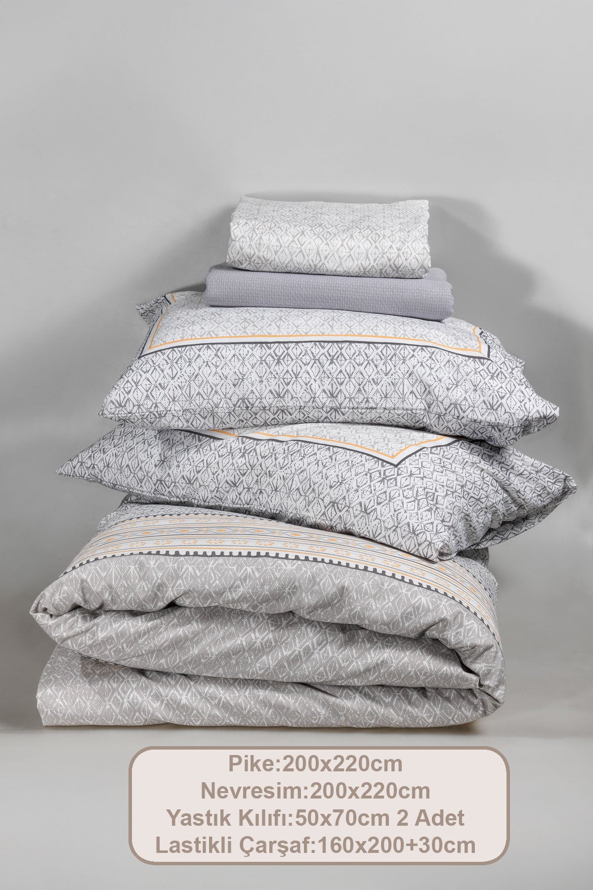 ELART Liya Nevresimli Pike Takımı Çift Kişilik Pamuklu 5 Parça (200x220 cm) Gri
