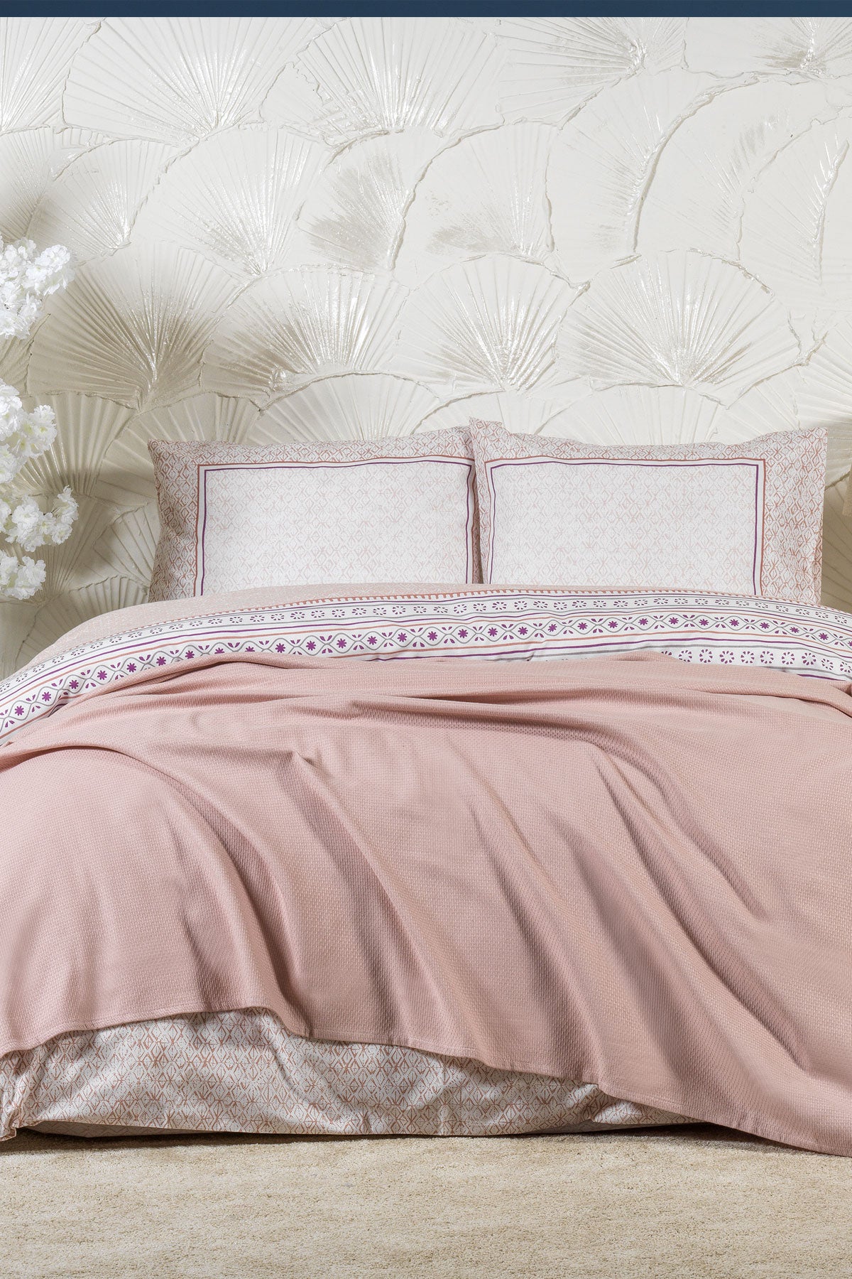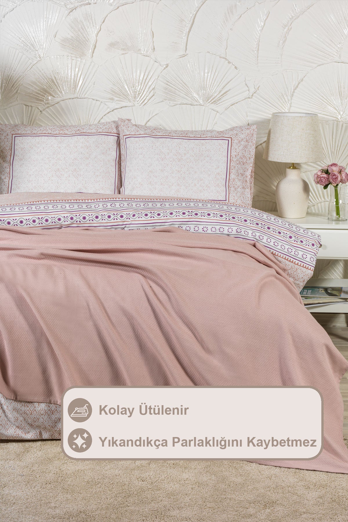 ELART Liya Nevresimli Pike Takımı Çift Kişilik Pamuklu 5 Parça (200x220 cm) Pudra