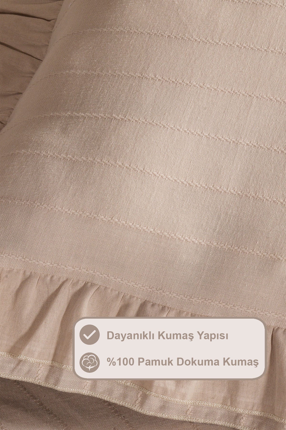 ELART Lotus Nevresim Takımı Çift Kişilik %100 Pamuk Ranforce Fırfırlı Lastikli Çarşaf (200x220 cm) Taş rengi