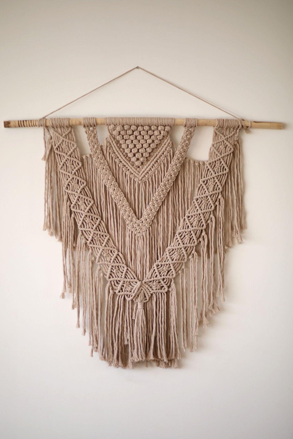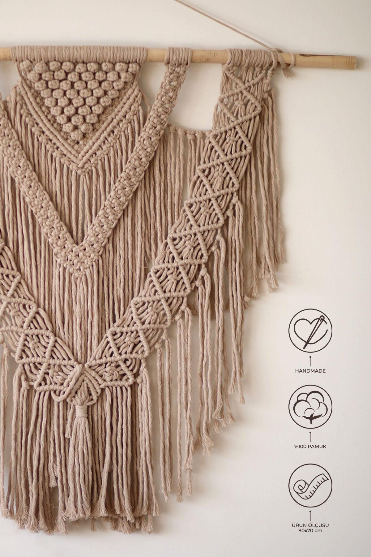 El yapımı makrome duvar süsü, bohem tarzını evinize taşımak için mükemmel bir tercih;