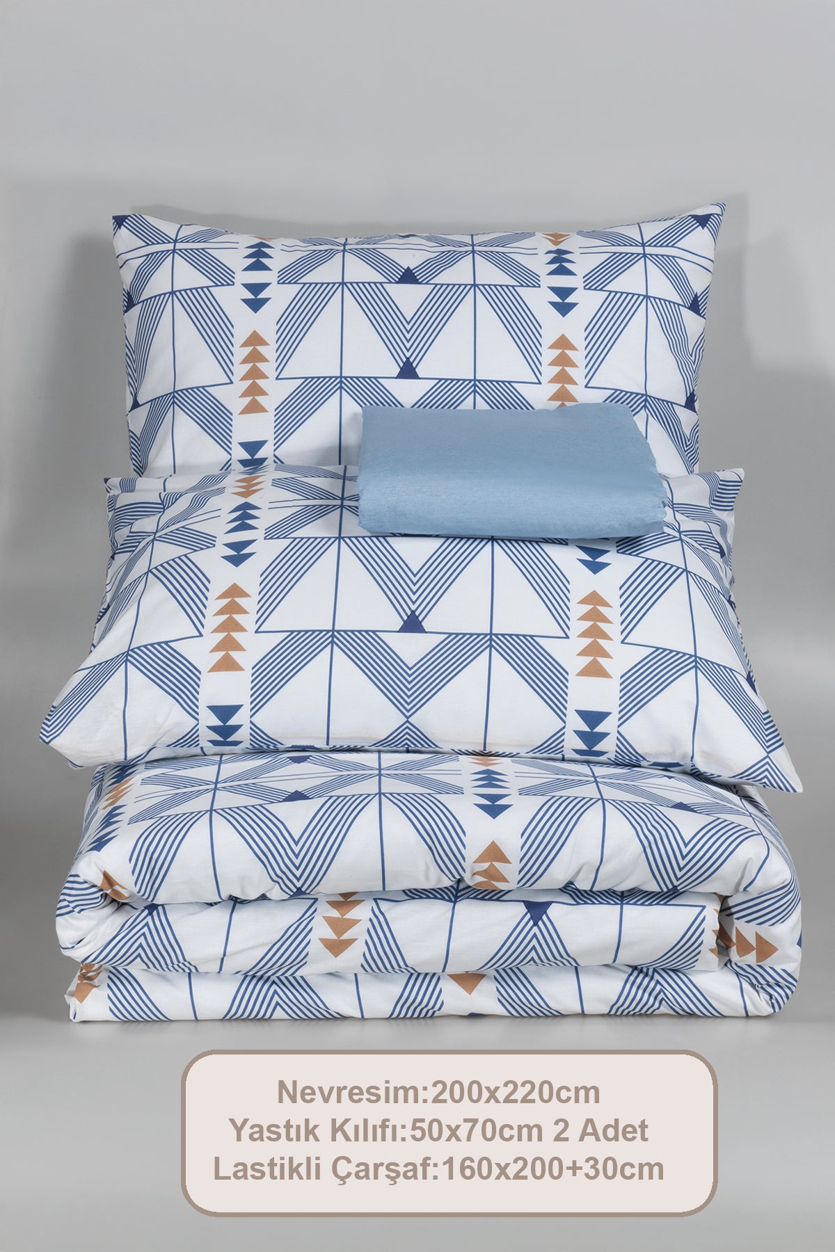 ELART Marcus Nevresim Takımı Çift Kişilik %100 Pamuk Ranforce Lastikli Çarşaf (200x220 cm) Mavi