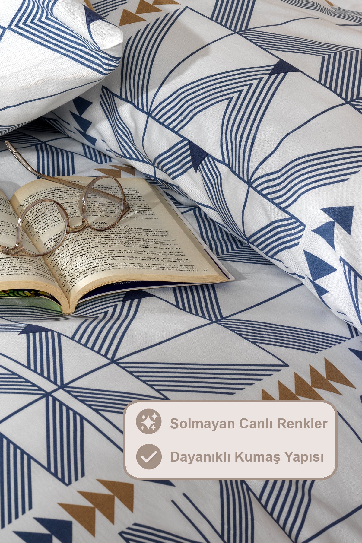 ELART Marcus Nevresim Takımı Tek Kişilik %100 Pamuk Ranforce Lastikli Çarşaf (160x220 cm) Mavi