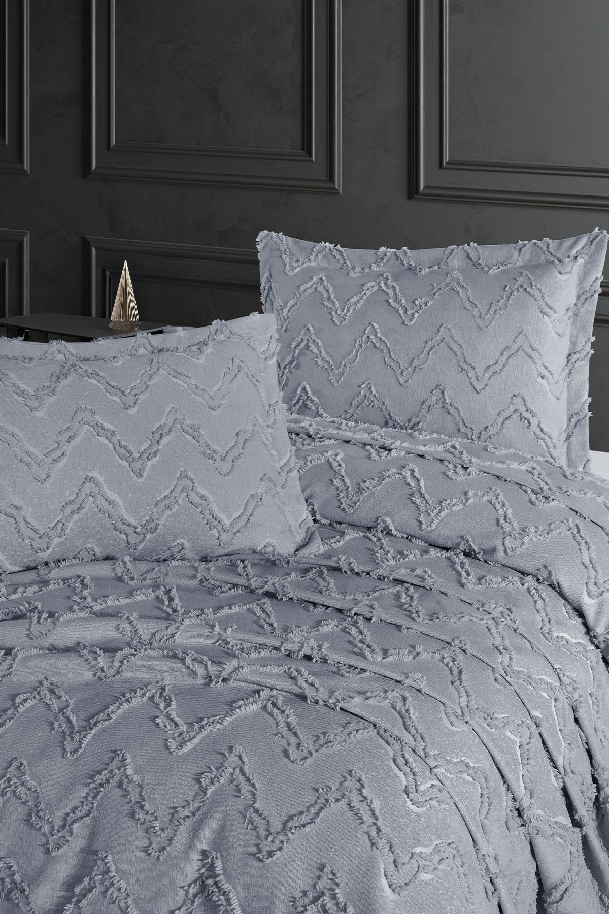 Maribel Çift Kişilik Yatak Örtüsü Seti, zarif tasarımı ve yumuşak dokusuyla hem günlük kullanıma hem de özel anlara şıklık katar. 180x240 cm ölçülerindeki geniş yatak örtüsü, çift kişilik yataklara tam uyum sağlar. Sete dahil olan 1 adet 50x70+5 cm yastık kılıfı ile görsel bütünlük sağlanır.