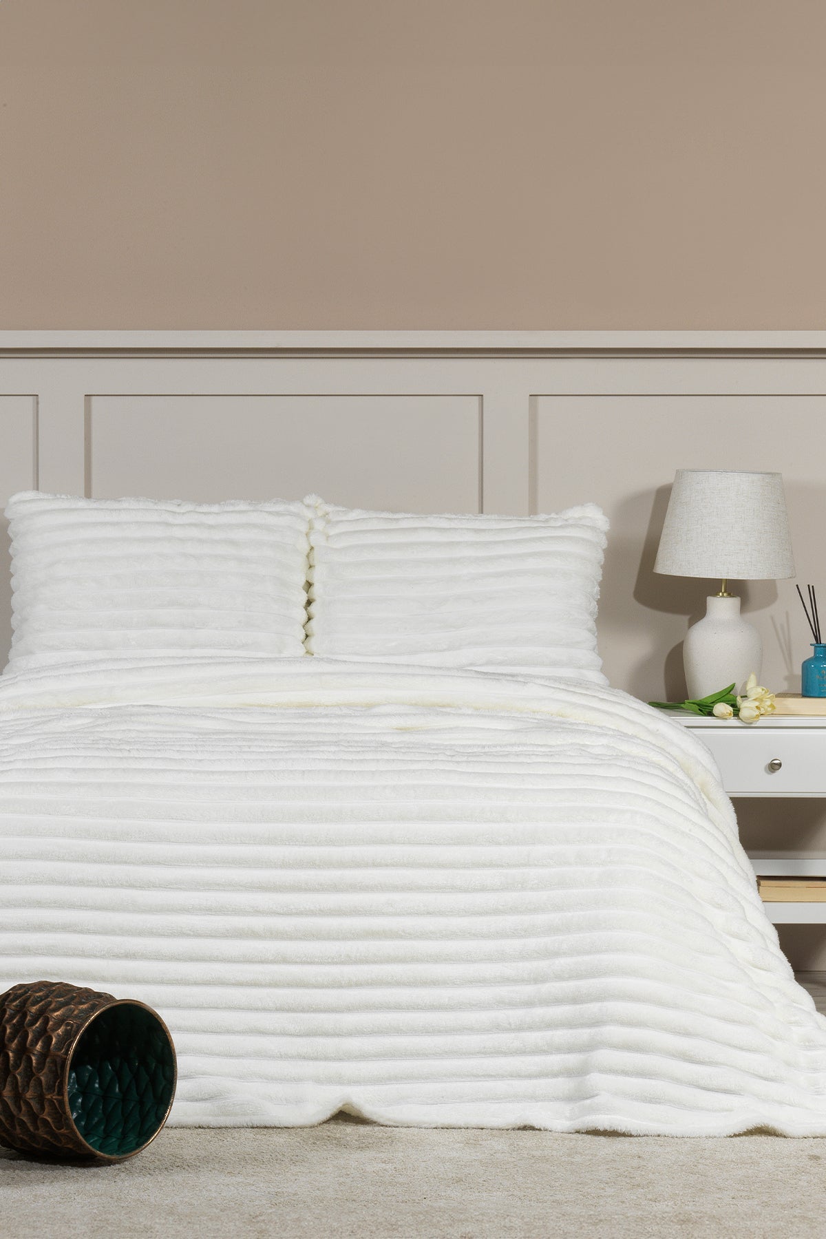 ELART Mateo Battaniye Seti Tek Kişilik Wellsoft 2 Parça (180x240 cm) Ekru