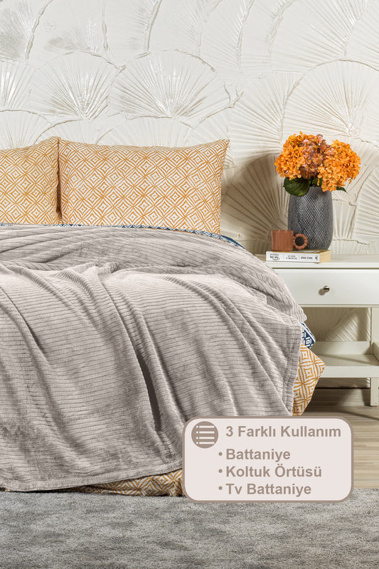 Pamuklu ve yumuşak yapısı ile yatağınızda kahvenizi yudumlarken, kitabınızı okurken özel anlarınıza eşlik edecektir. Natürel deseni ve enerji veren renk tonlarıyla evinizin dekorasyonuna kolayca uyum sağlayacaktır. Cildi tahriş etmez ve insan sağlığına zarar vermez. 200x220 cm ölçüsündeki geniş yapısıyla çift kişilik yataklara mükemmel uyum sağlar. Ürünümüzü 30 derecede makinede yıkayarak günlük kullanımınızda konforu ve rahatlığı bulacaksınız. Kurutma makinesi ve kuru temizleme önerilmez.