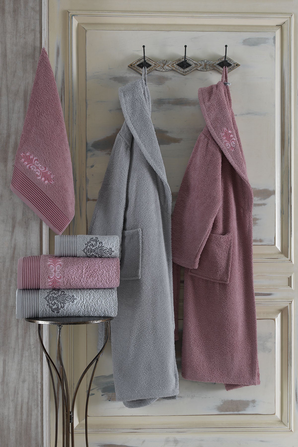 ELART Oscar Bornoz Aile Seti Nakışlı 6 Parça Gülkurusu