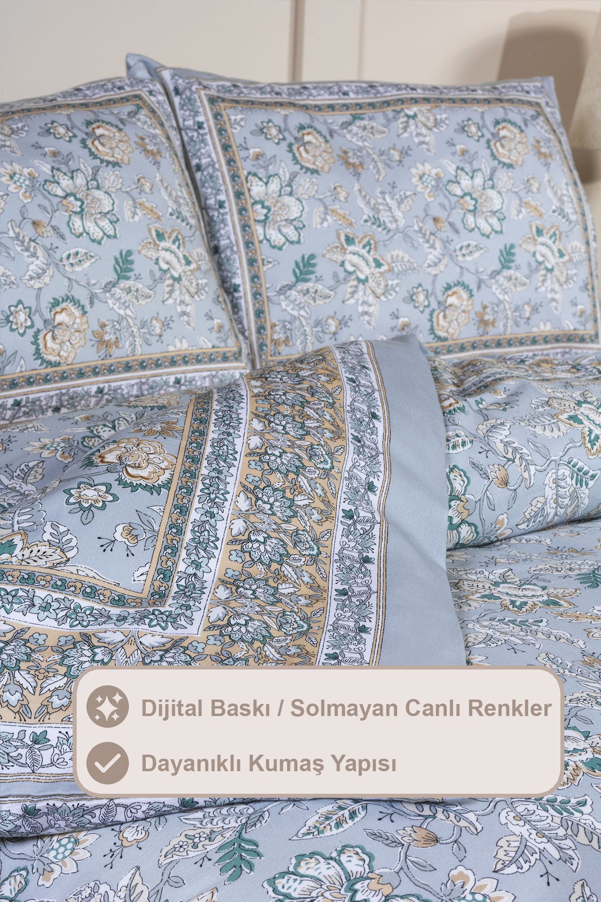 ELART Poem Nevresim Takımı King Size Battal Boy Digital Baskılı %100 Pamuk Saten (240x220 cm) Bej