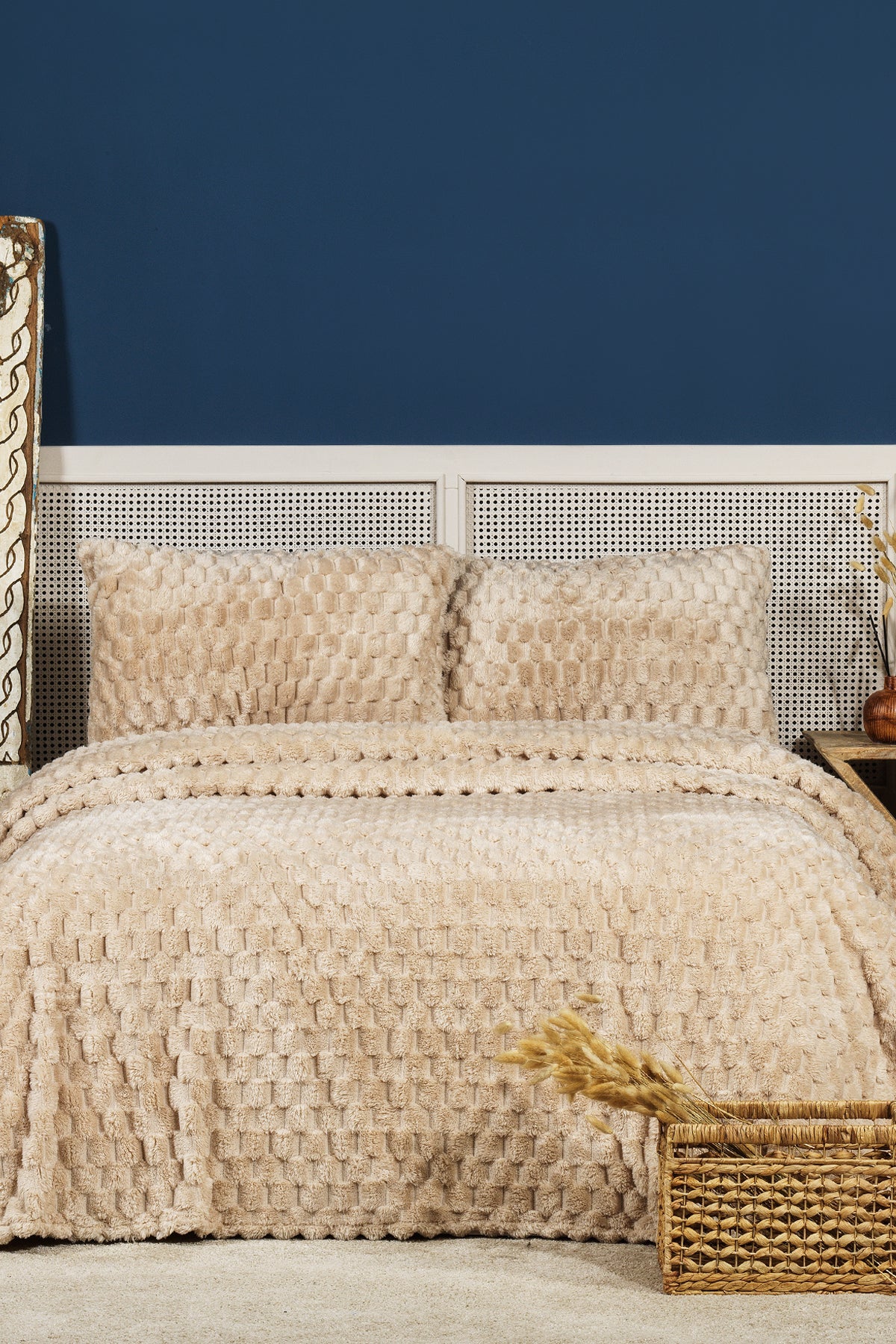 ELART Polen Battaniye Seti Çift Kişilik Wellsoft 3 Parça (230x250 cm) Cappuccino