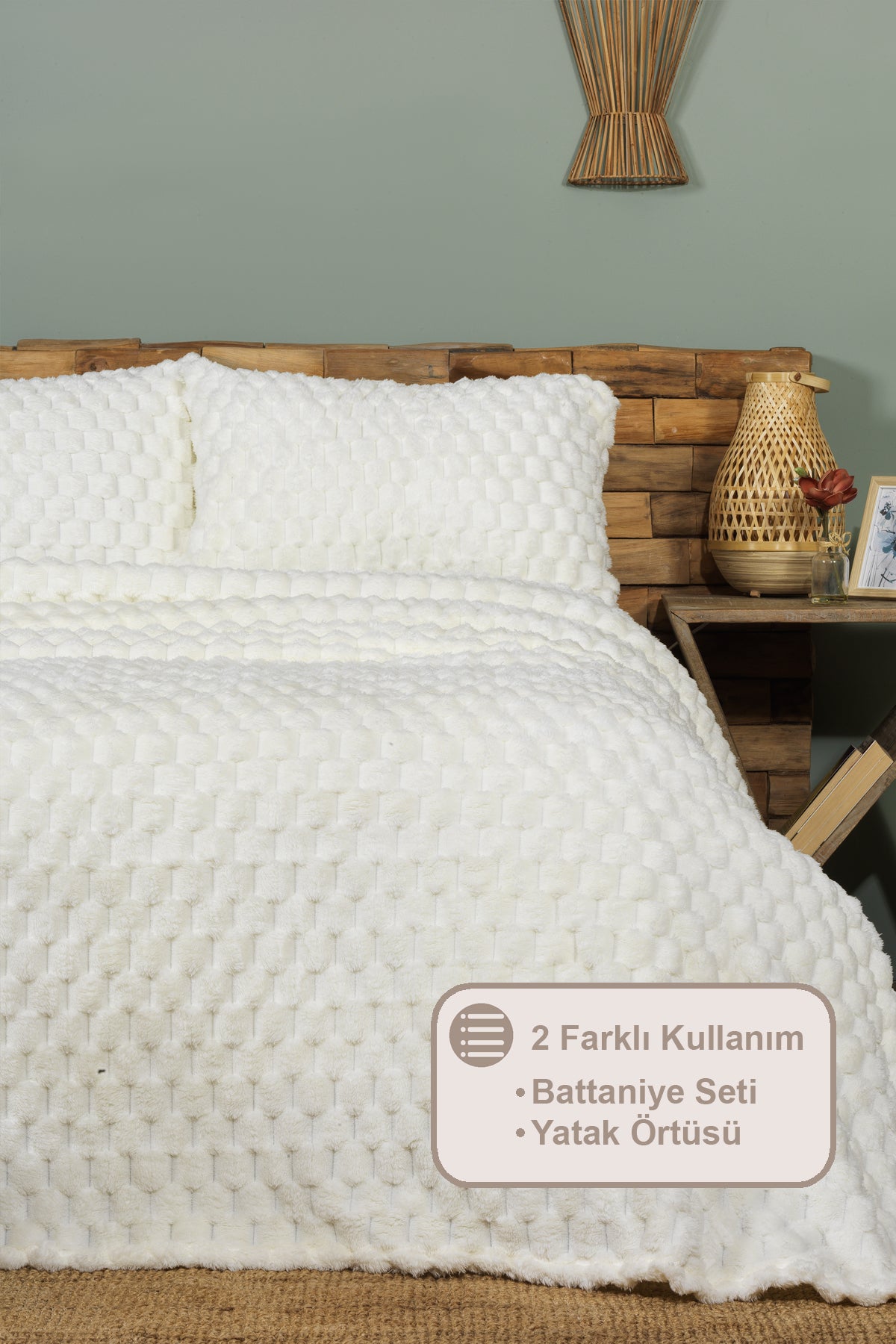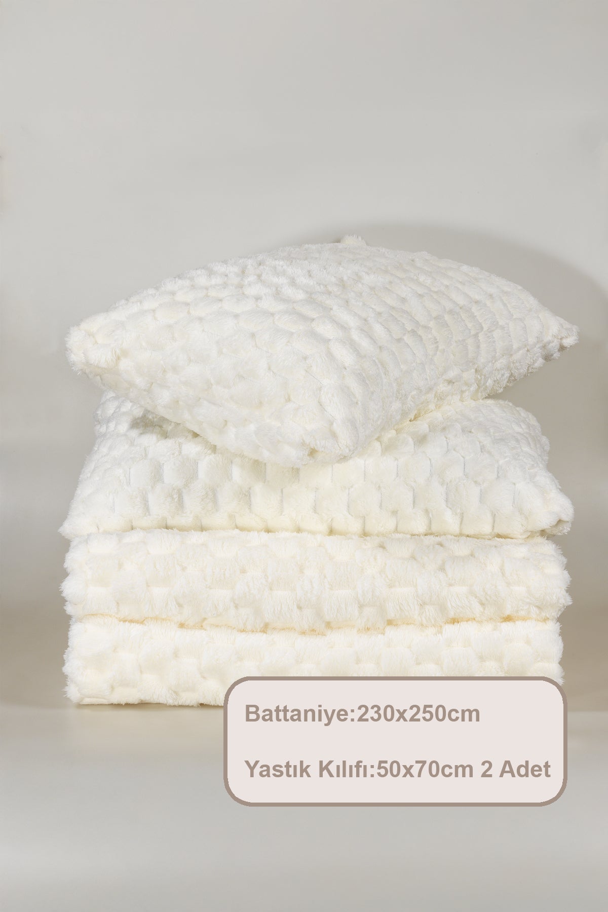 ELART Polen Battaniye Seti Çift Kişilik Wellsoft 3 Parça (230x250 cm) Ekru