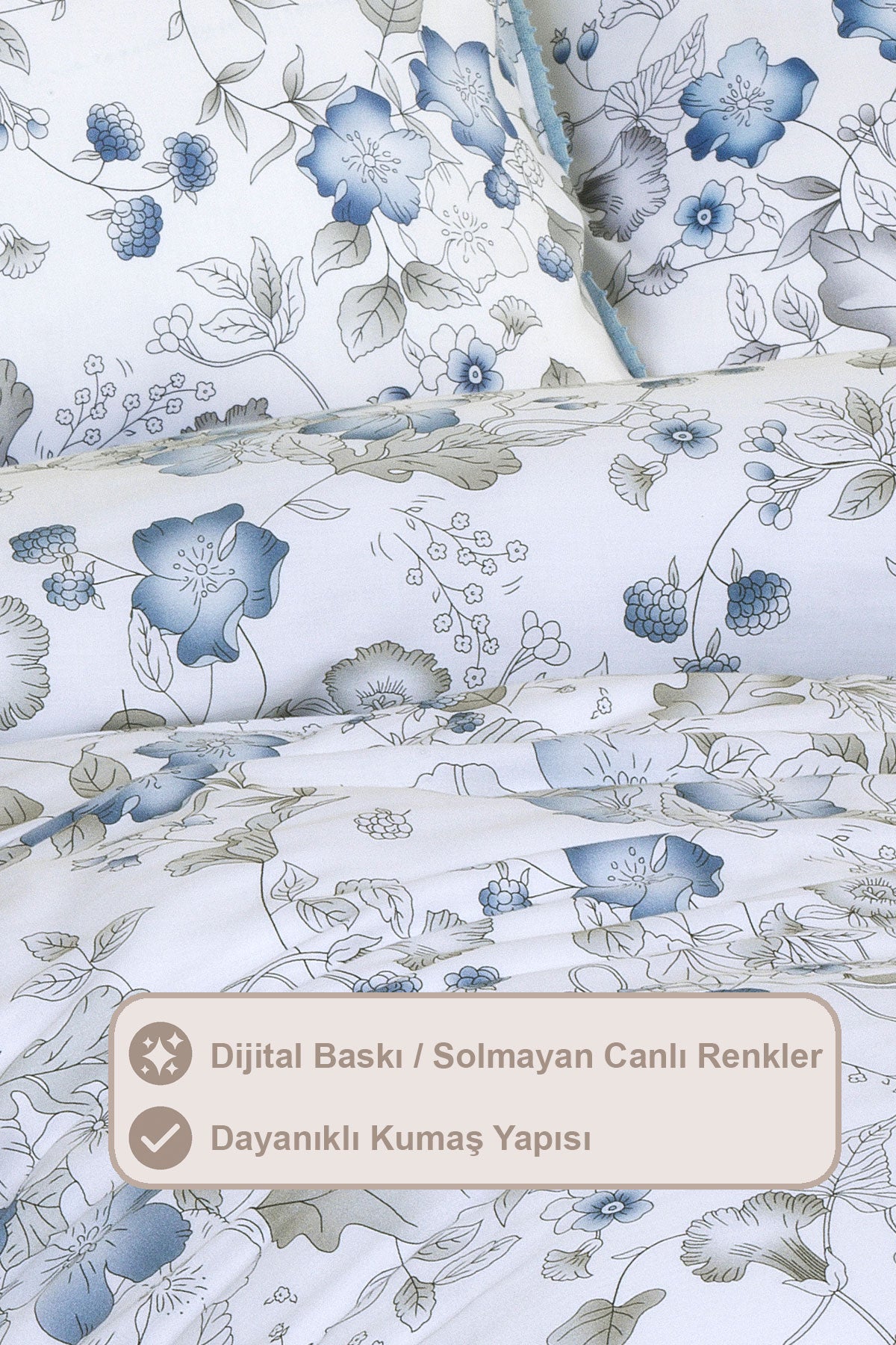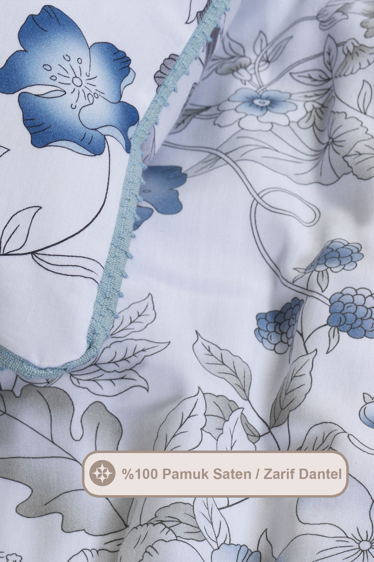 ELART Rose Nevresim Takımı Çift Kişilik Digital Baskılı %100 Pamuk Saten Dantelli (200x220 cm) Mavi