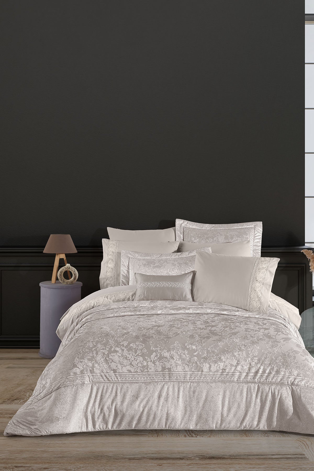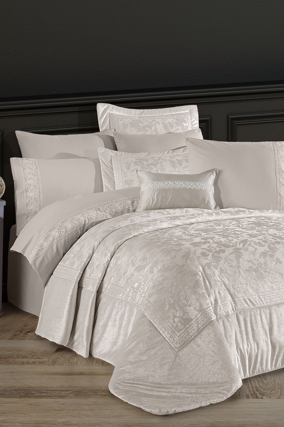 Toplam 10 parça içeriğiyle hem estetik hem de işlevsellik sunan bu set, çeyizlik olarak değerlendirilebileceği gibi, yatak odasına zarif bir güncelleme yapmak isteyenler için de ideal bir seçimdir.