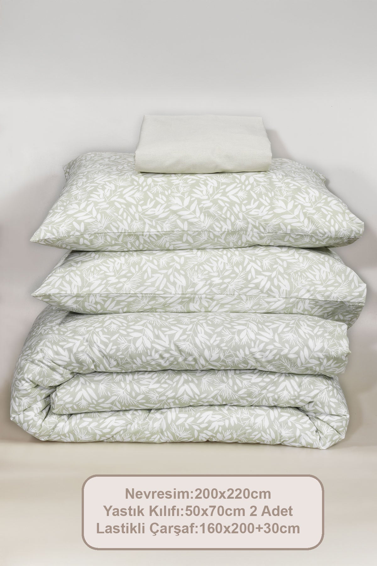 ELART Siena Nevresim Takımı Çift Kişilik %100 Pamuk Ranforce Lastikli Çarşaf (200x220 cm) Yeşil
