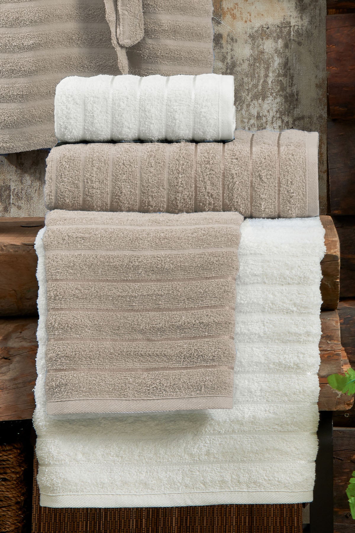 ELART Soft Bornoz Aile Seti 6 Parça (70x135 cm) Bej-Krem