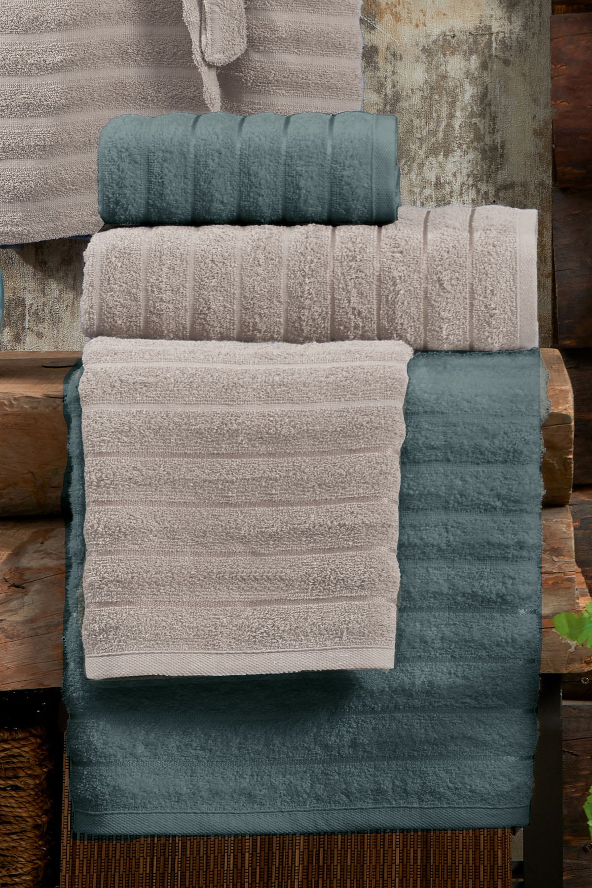 ELART Soft Bornoz Aile Seti 6 Parça (70x135 cm) Bej-Yeşil