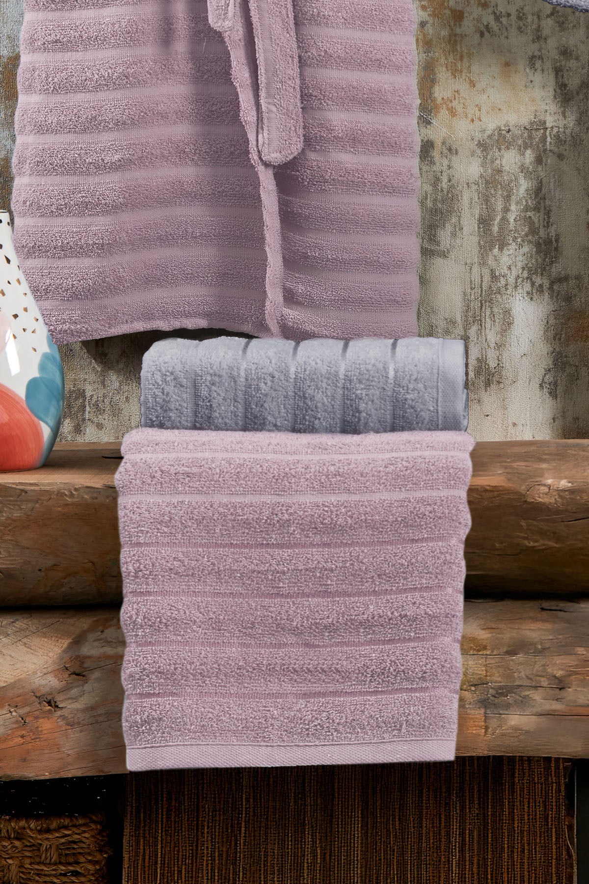 ELART Soft Bornoz Aile Seti Hamam Seti 4 Parça (70x135 cm) Gülkurusu-Gri