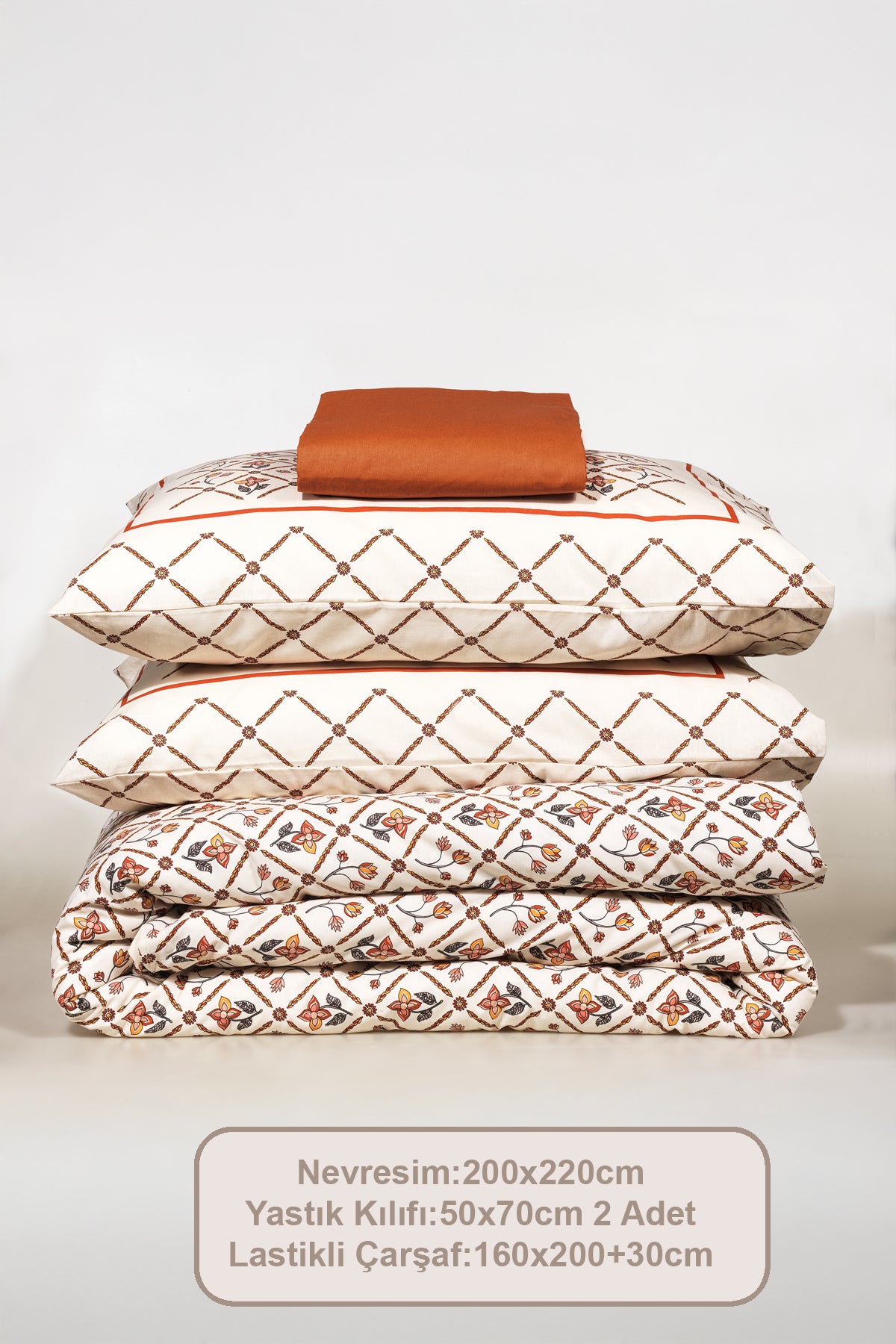 ELART Terra Nevresim Takımı Çift Kişilik Lastikli Çarşaf (200x220 cm) Tarçın