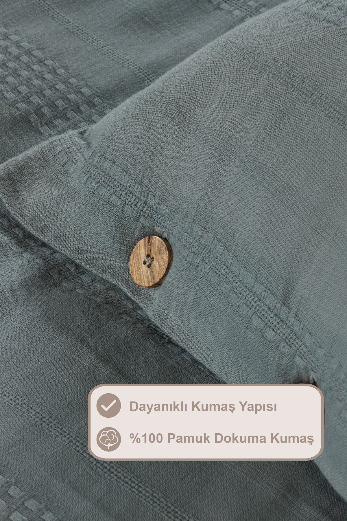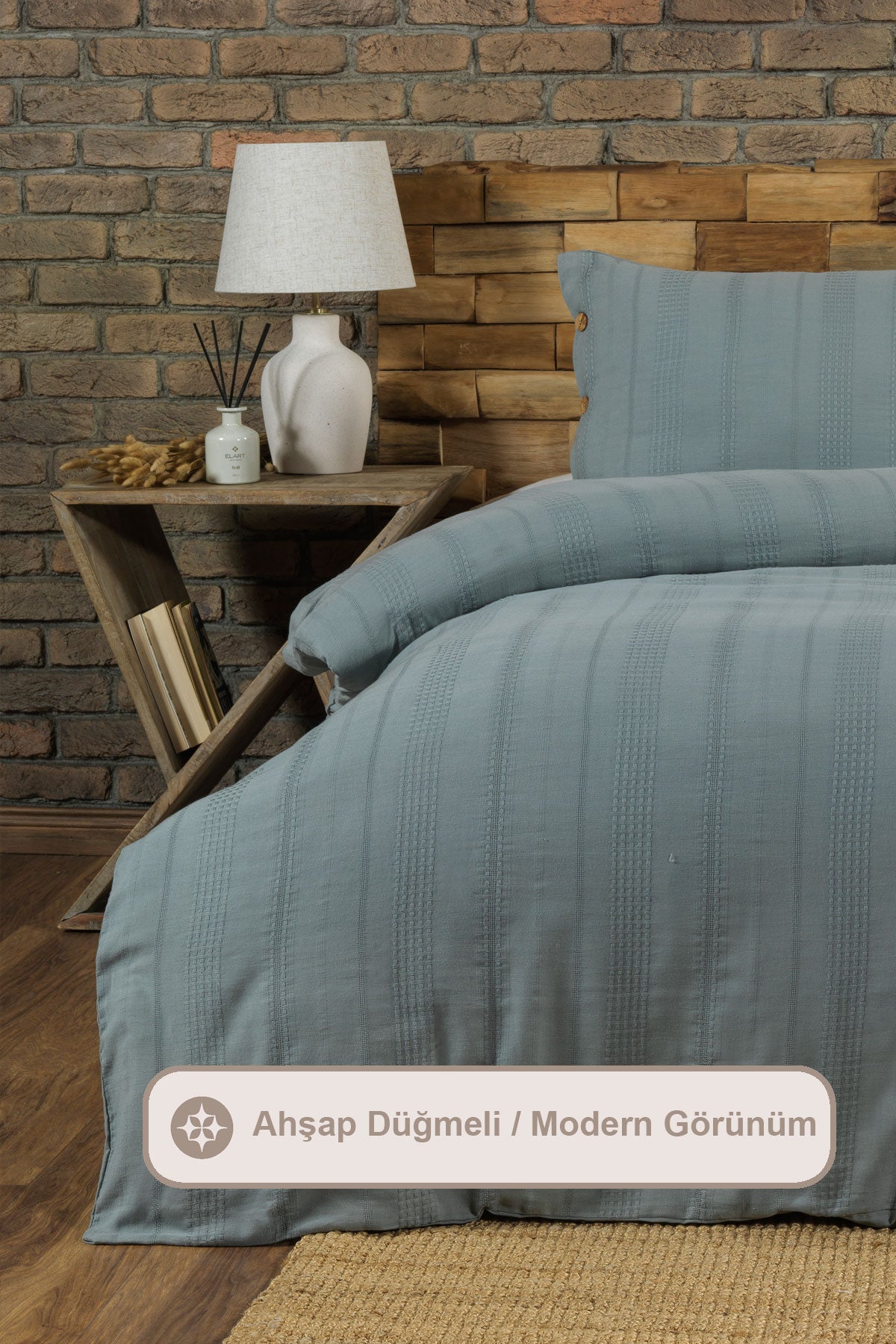 ELART Tiara Nevresim Takımı Tek Kişilik Lastikli Çarşaf %100 Pamuk Ranforce Ahşap Düğmeli (160x220 cm) Yeşil