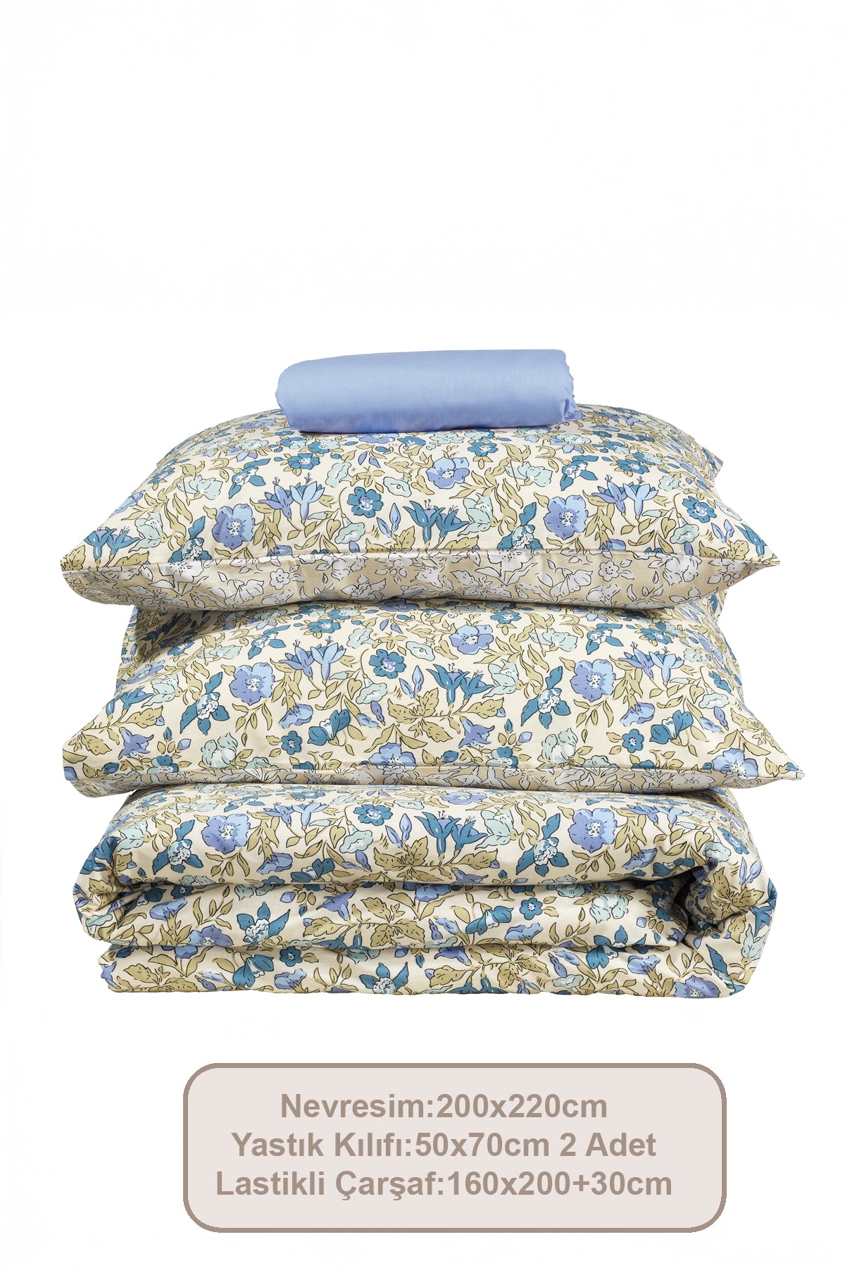 4 parçadan oluşmaktadır. %100 pamuk kumaş; doğal hava geçirgen yapısı ve yüksek nem emici özelliği sayesinde terletmez. Rahat ve konforlu bir uyku deneyimi sunar. Cildi tahriş etmez ve insan sağlığına zarar vermez. 54 tel dokuma sıklığı ile ranforce kumaş uzun ömürlü ve dayanıklıdır. Ürünümüzü 30 derecede makinede yıkayarak ilk günkü canlı renklerini kaybetmeden kullanabilirsiniz. Kurutma makinesi ve kuru temizleme önerilmez.