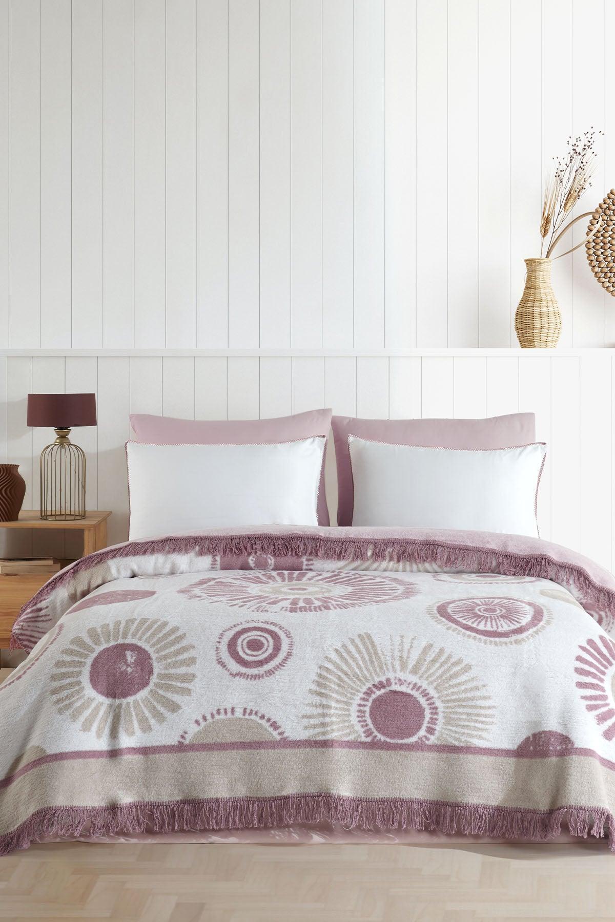 Pamuksu dokusuyla hem yatak örtüsü hem de battaniye olarak kullanılabilir;