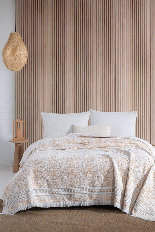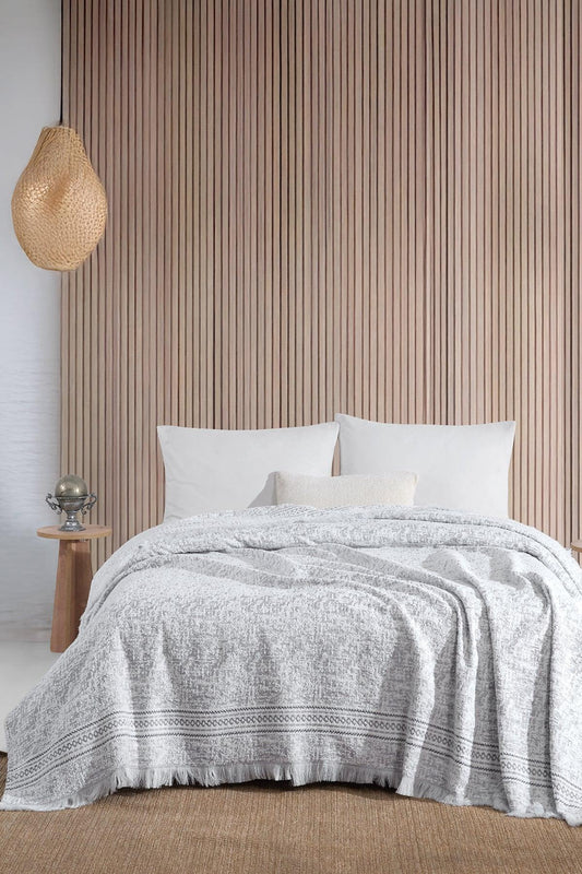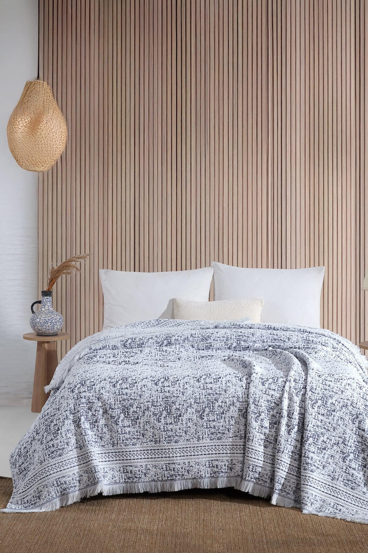 Pamuksu dokusuyla hem yatak örtüsü hem de battaniye olarak kullanılabilir;