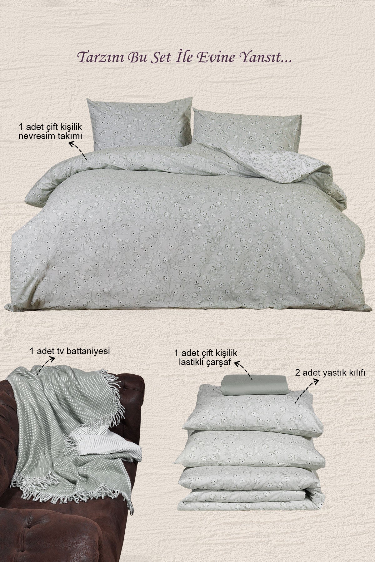Jasmin Carlos Kombin Set Çift Kişilik Çeyiz Seti 5 Parça Yeşil