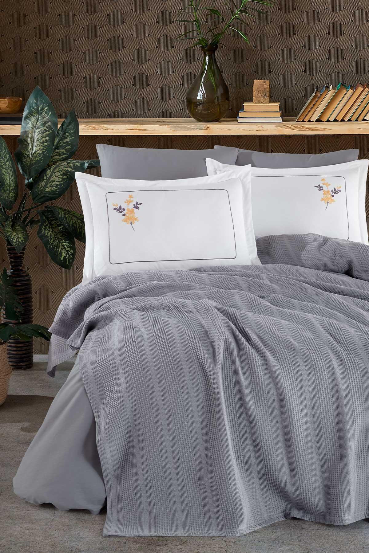 Molly Pamuklu Pike Çift Kişilik Gri (210x230 cm) - Elart Home