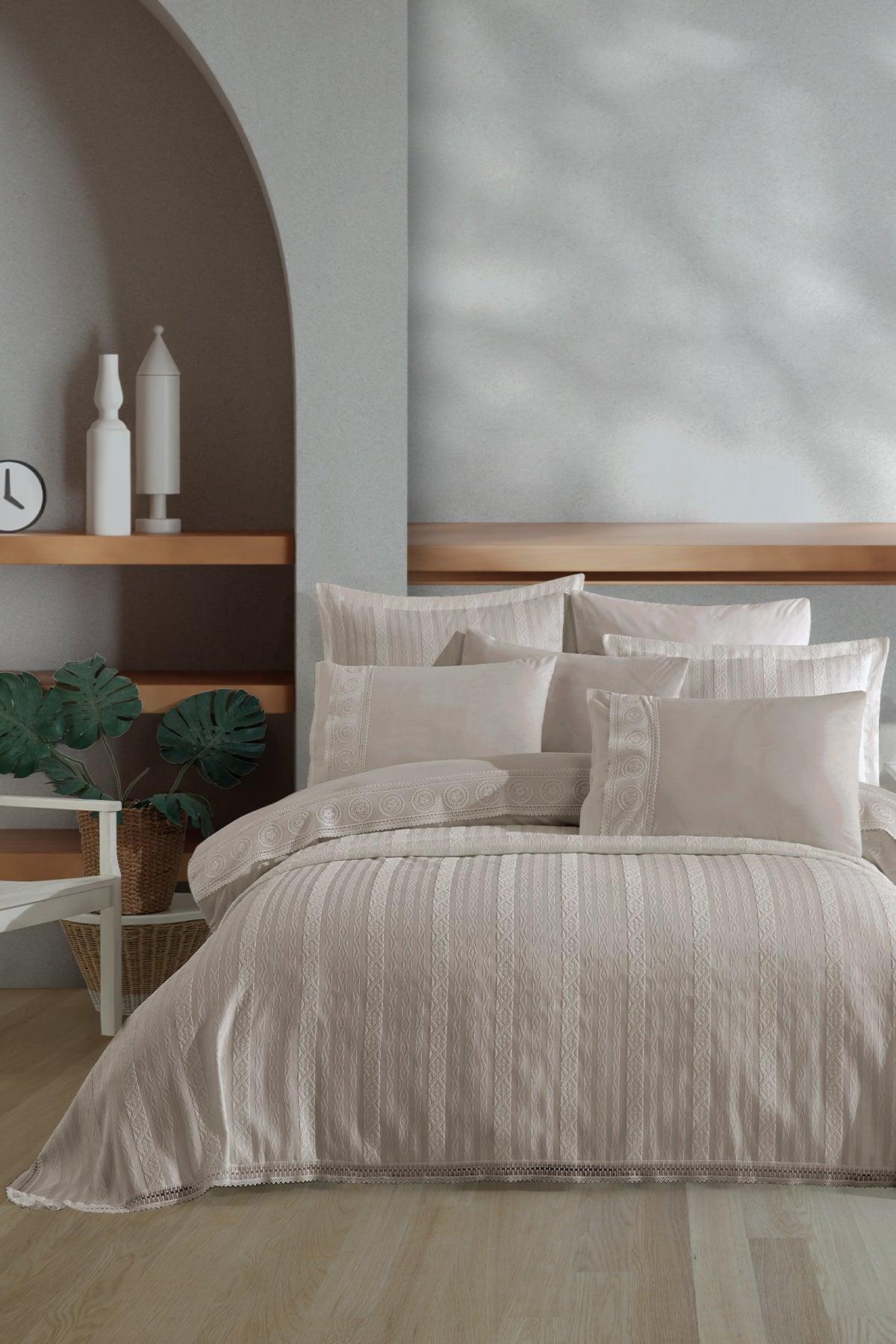 Pera Nevresimli Yatak Örtüsü Seti, yatak odanıza zarif ve sofistike bir dokunuş kazandırır ;