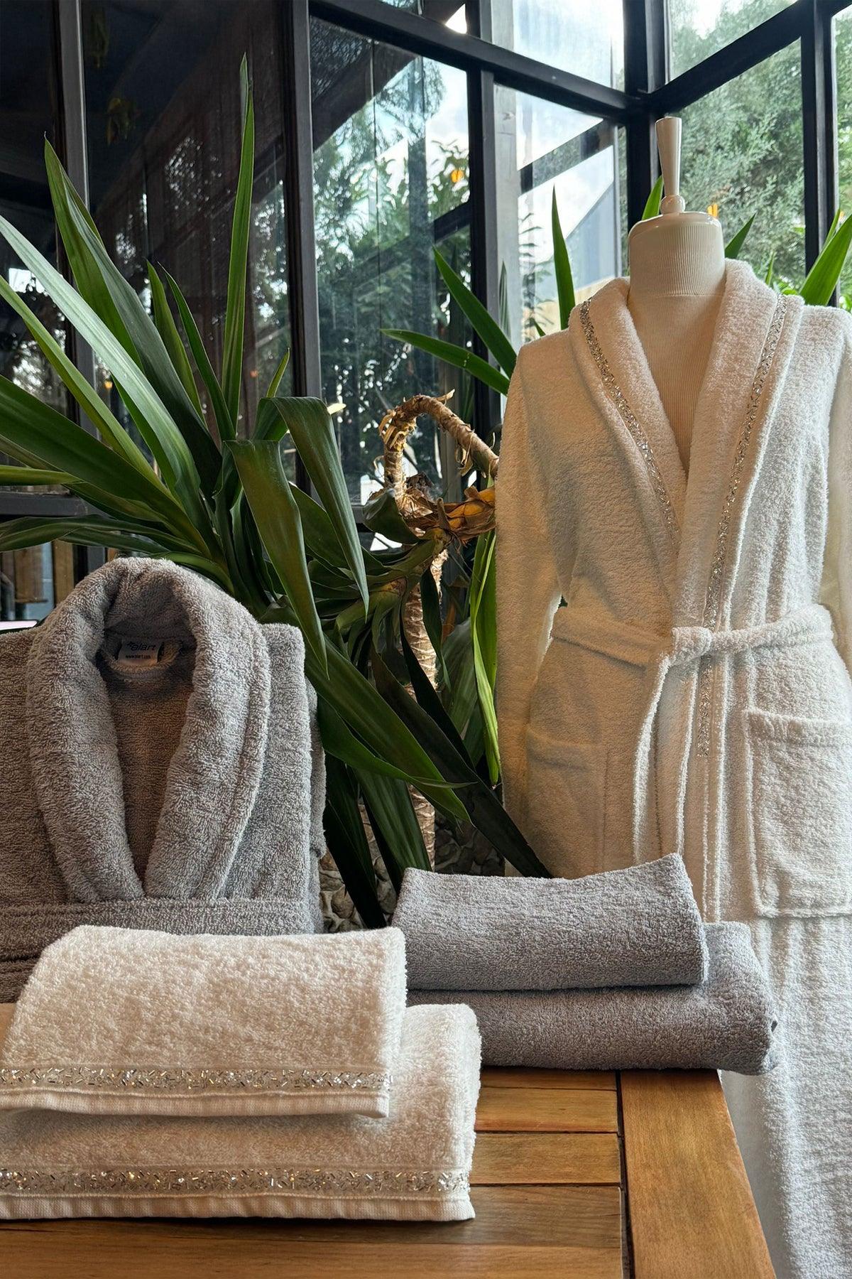 ELART Vals Bornoz Aile Seti 6 Parça Gri